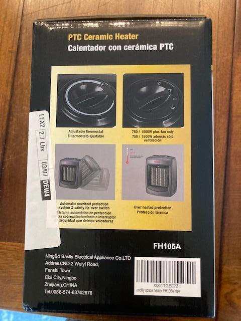 Brand new Andily Ceramic Heater 1500W. Please see all pictures as they are the best representation of the items. The pictures show condition, measurements if taken, and what is included in the lot. Due to the large amount that we photograph and the time frame, we are not always able to take measurements. All items unless noted, are pre-owned and have been used. If you purchased furniture, you must bring help. We do not allow one person to carry large furniture out on their own. Bring help, tools and a truck for the safety of our client’s homes, and your personal safety. Company policy. Thank you.