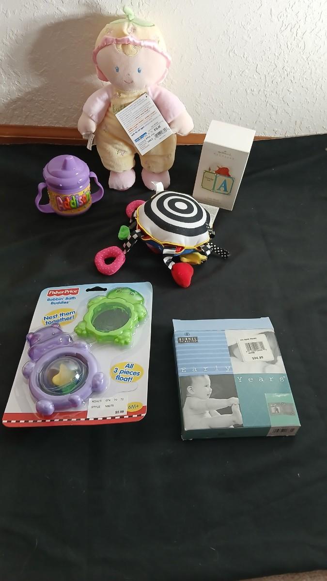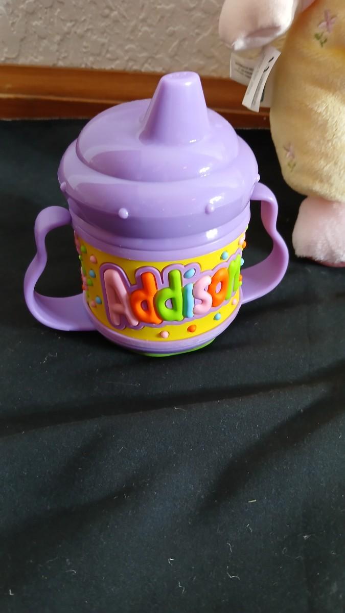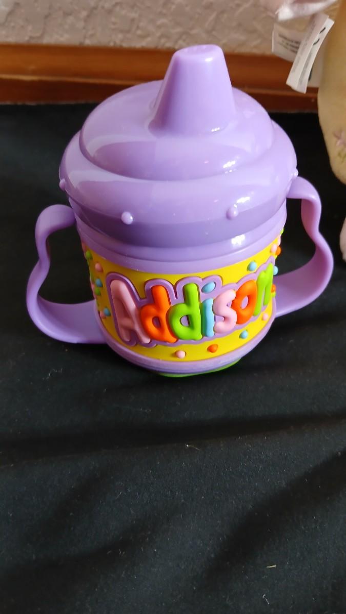 Brand new baby gifts - Addison personalized sippy cup - Hallmark Keepsake ornament- Rattles and more