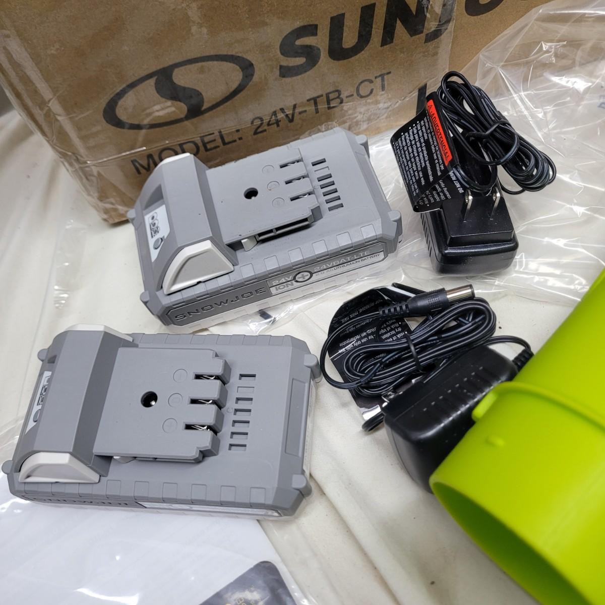 Comes with 2 batteries, 2 chargers, extension for blower, saw blade and chain