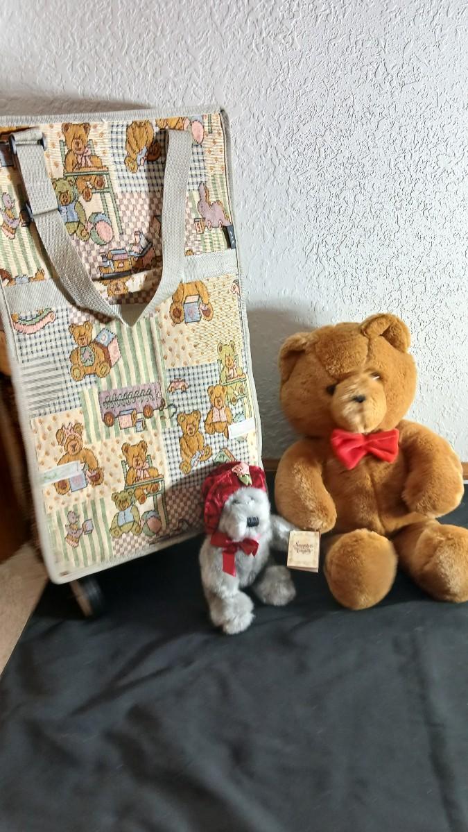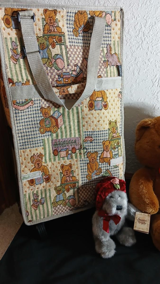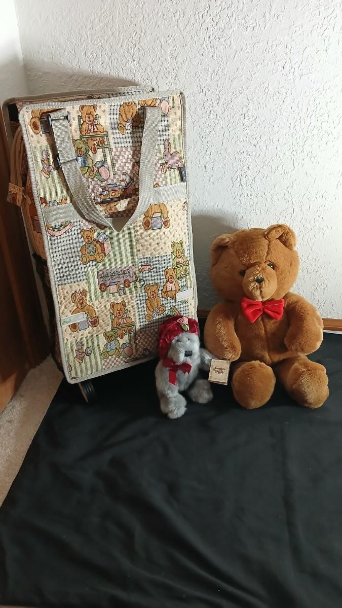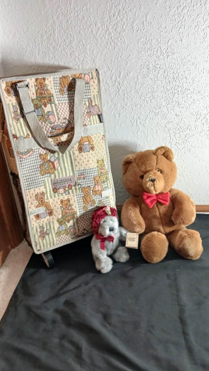 Brand new Bear pattern luggage with wheels and two teddy bears Dakin & Snuggly & Cuddly