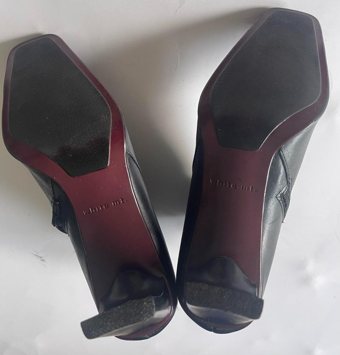 Step into style with these stunning black leather ankle boots by White Mountain! Up for auction is a brand new pair, perfect for adding a touch of elegance and edge to your wardrobe.