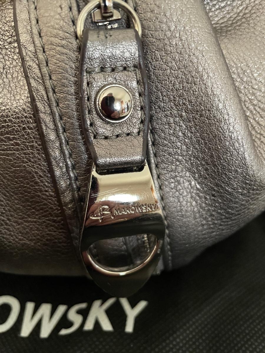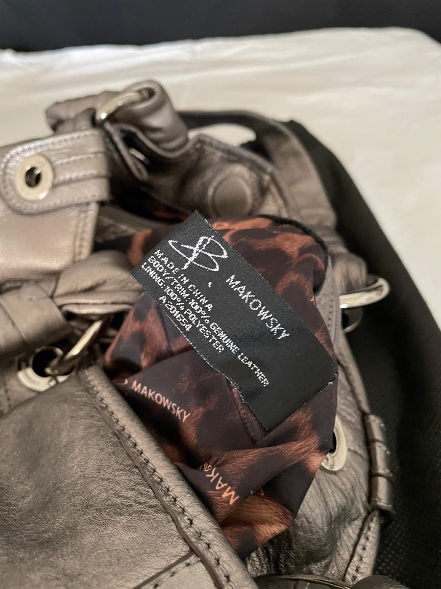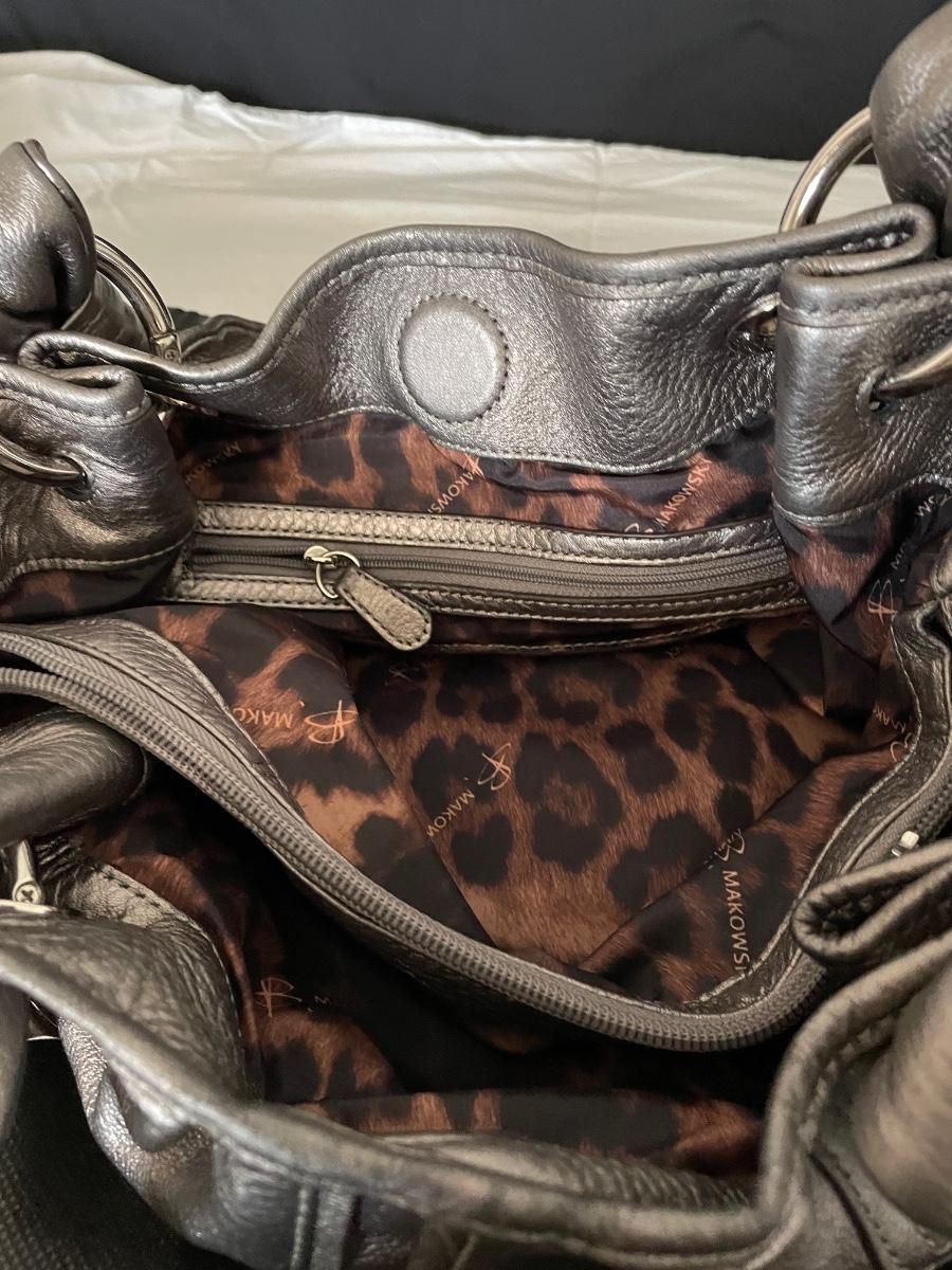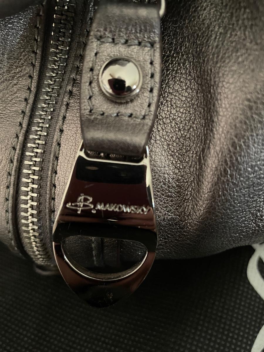 SILVER BRAND NEW B,MAKOWSKY PURSE WITH PRINTED LINING