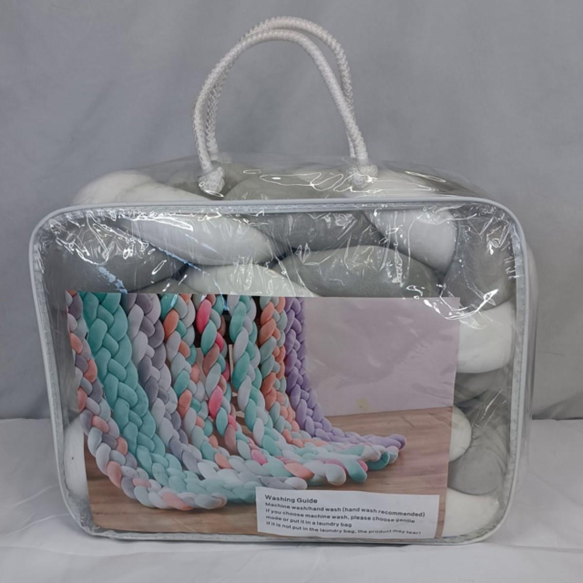 This is a 2 meter (6.5') plush braided baby bumper. Multipurpose, swaddle baby with it or use as a crib bumper.