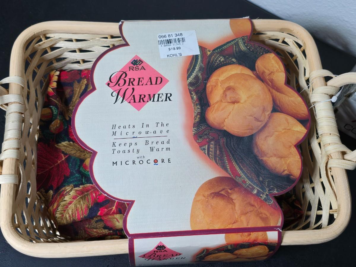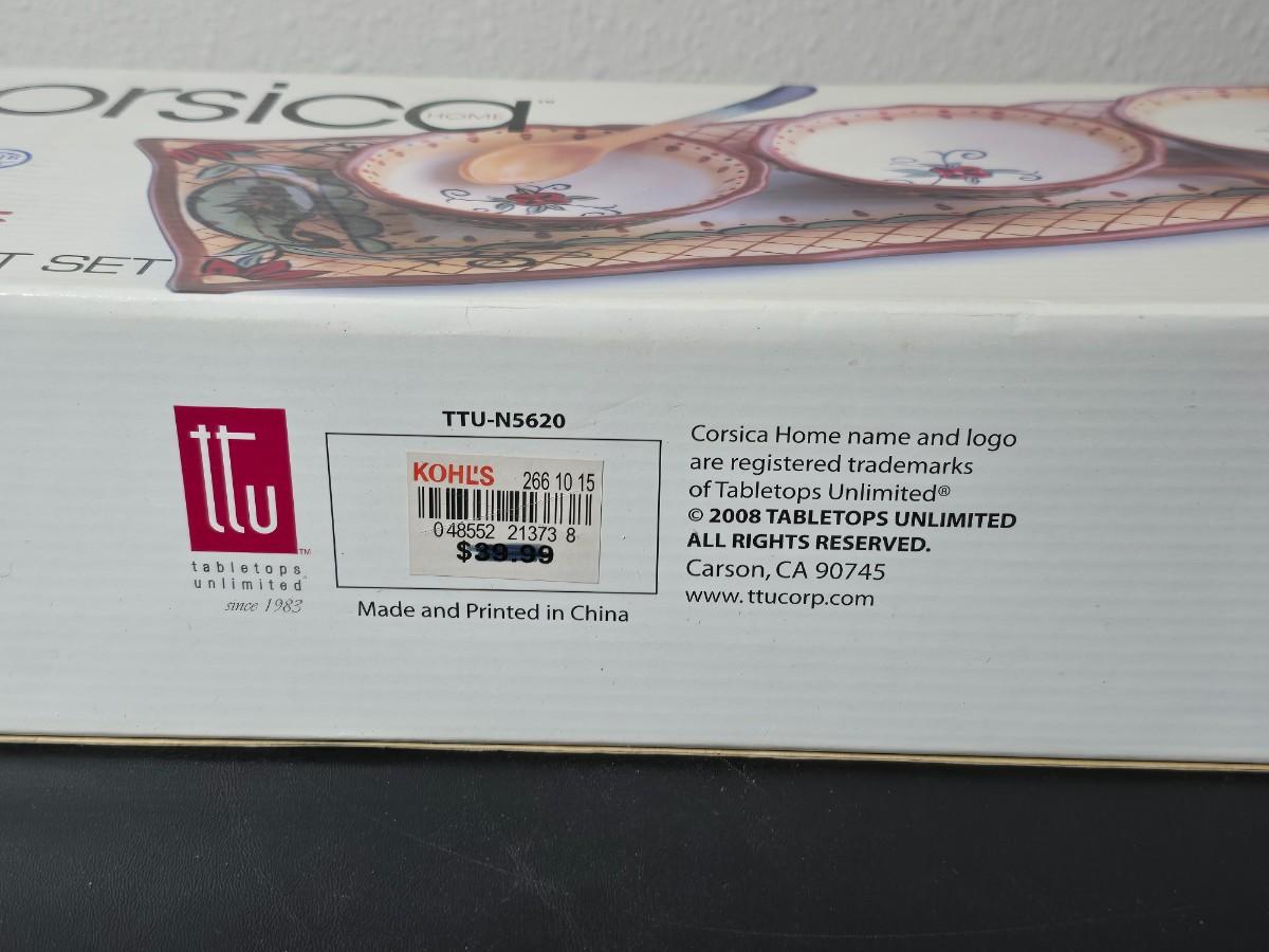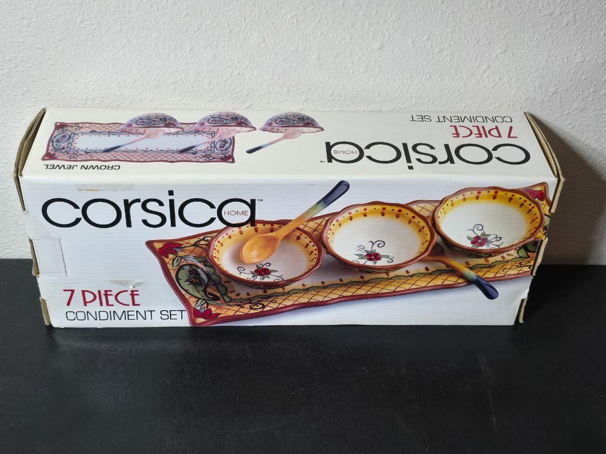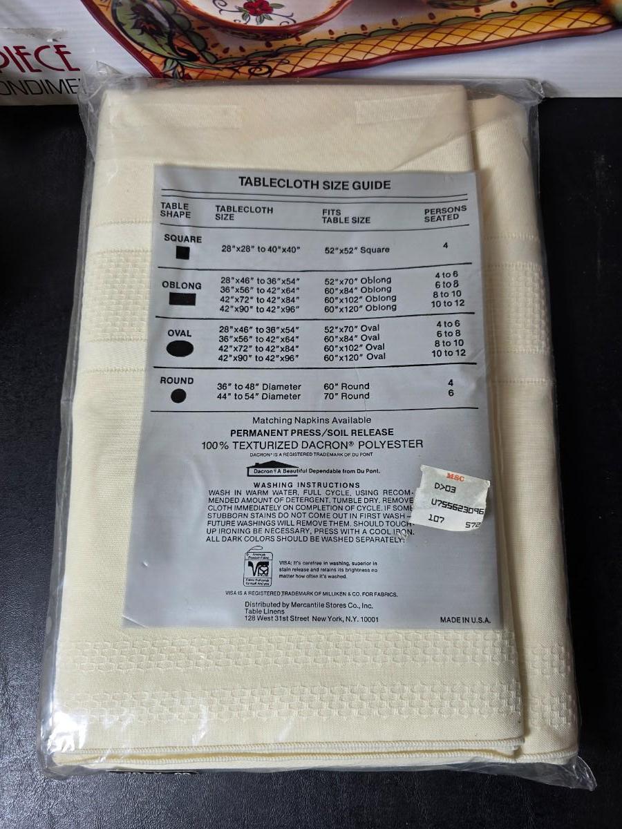 Brand new Corsica 7-piece condiment set - table cloth - and a bread warmer GREAT GIFT IDEAS!