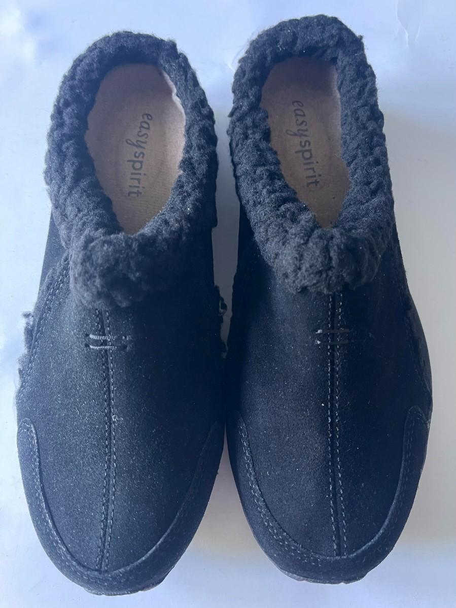 Looking for a comfortable and stylish pair of shoes? Check out these Easy Spirit slip-ons in size 6.5! These shoes feature a black suede-like exterior with a cozy, fleece-lined interior that will keep your feet warm and comfortable. They are perfect for casual wear, whether you’re running errands or relaxing at home.