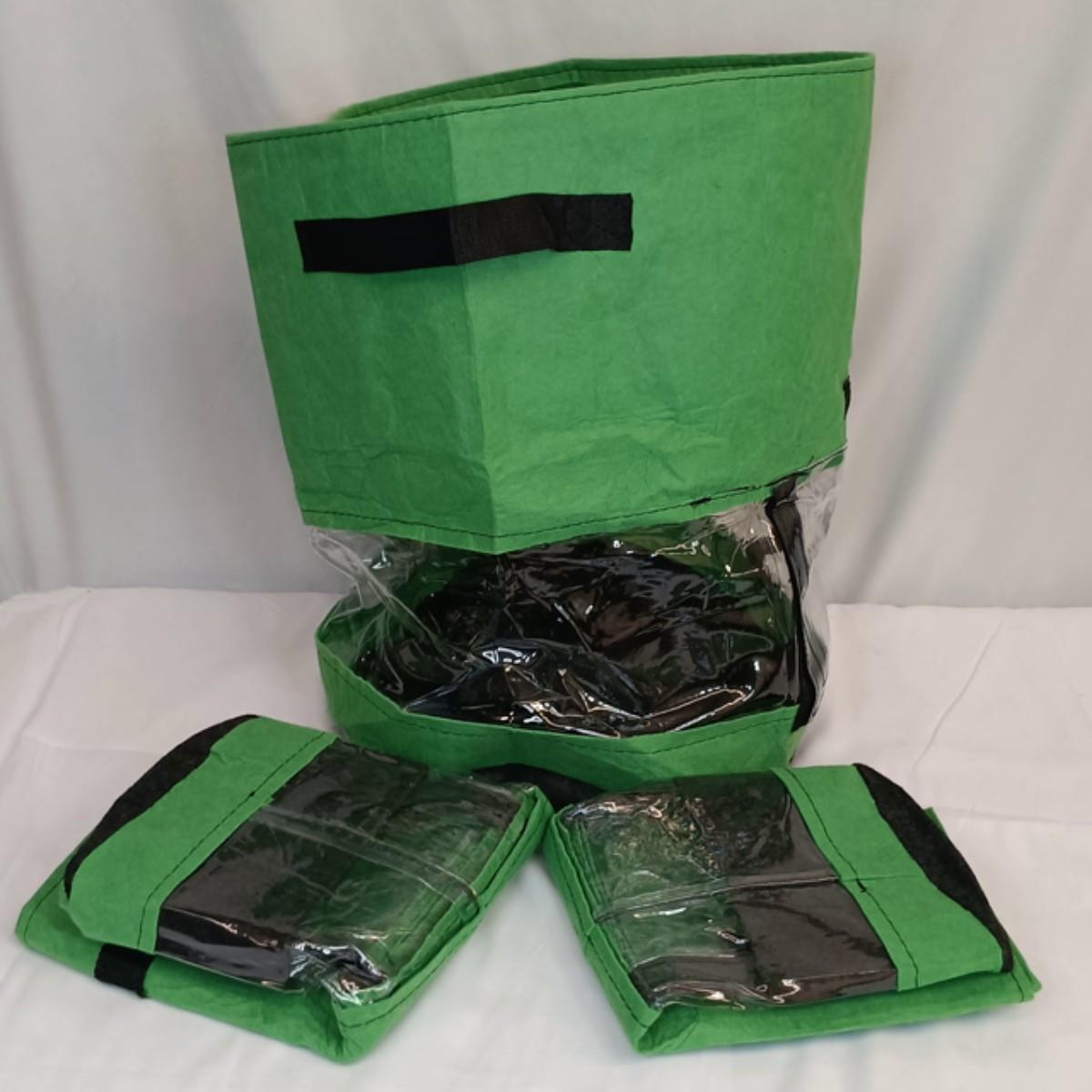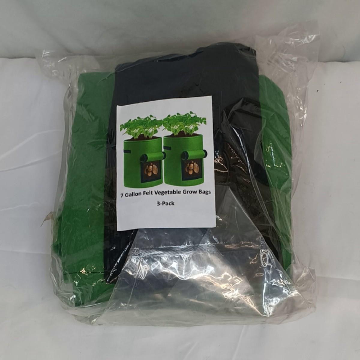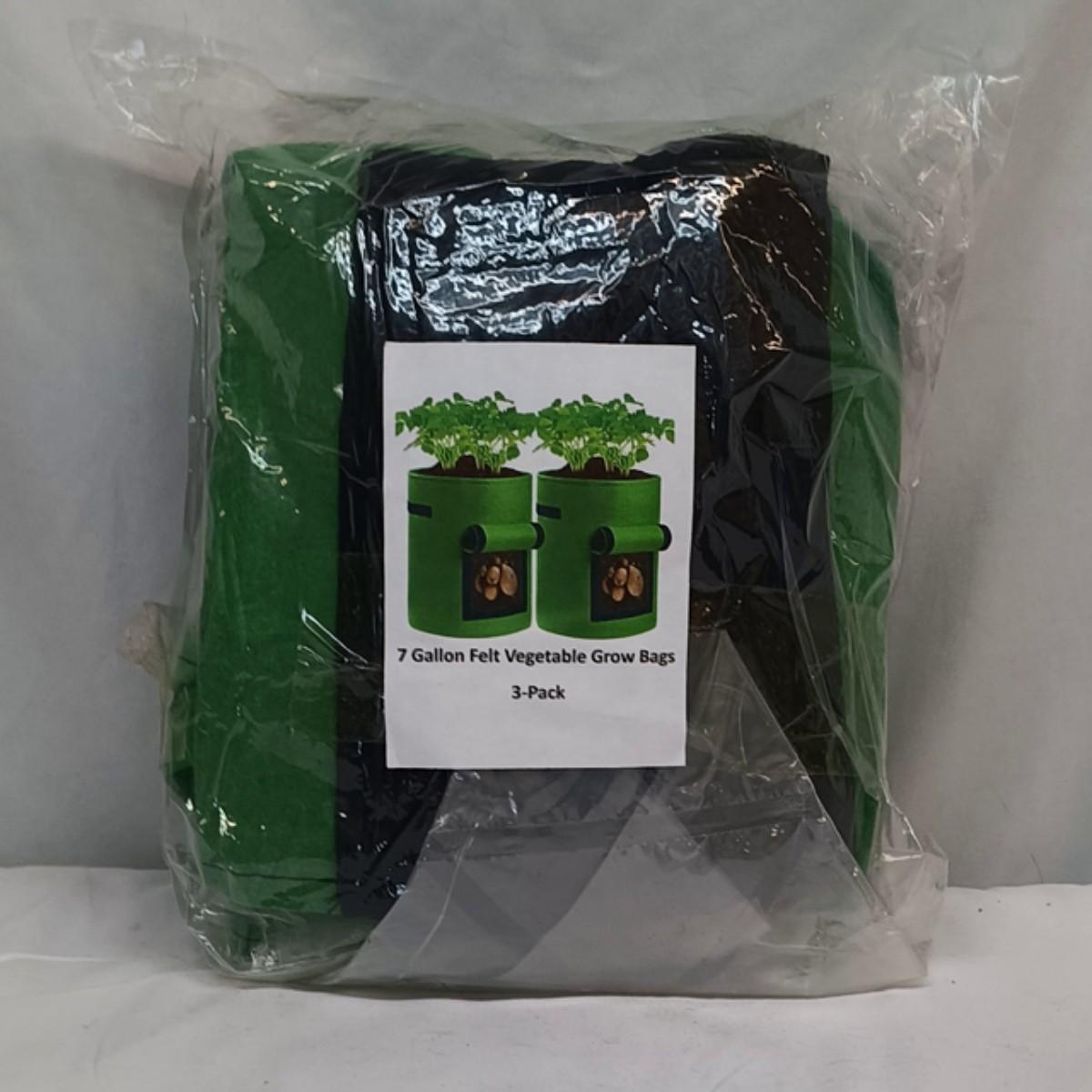 This lot includes one brand new, factory sealed package of three felt vegetable grow bags and one open box package of three felt vegetable grow bags. You will receive a total of 6 new vegetable grow bags. Each frow bag has a 7 gallon capacity.