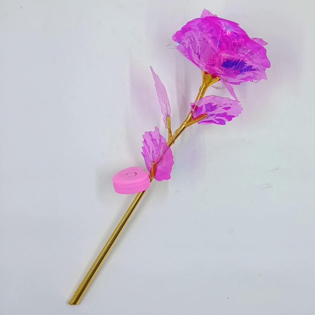 This rose features an iridescent petal pattern with a gold plated stem and gold accents.