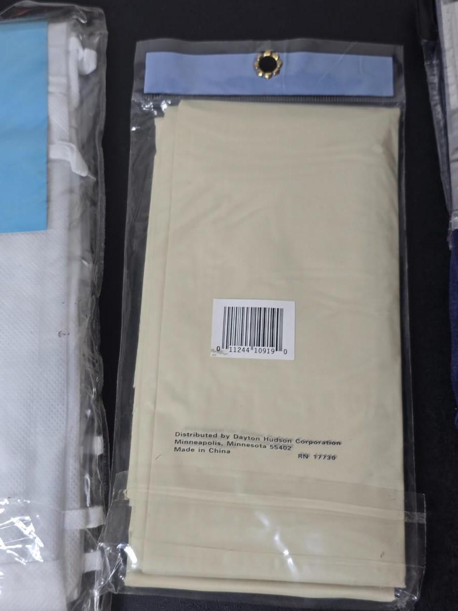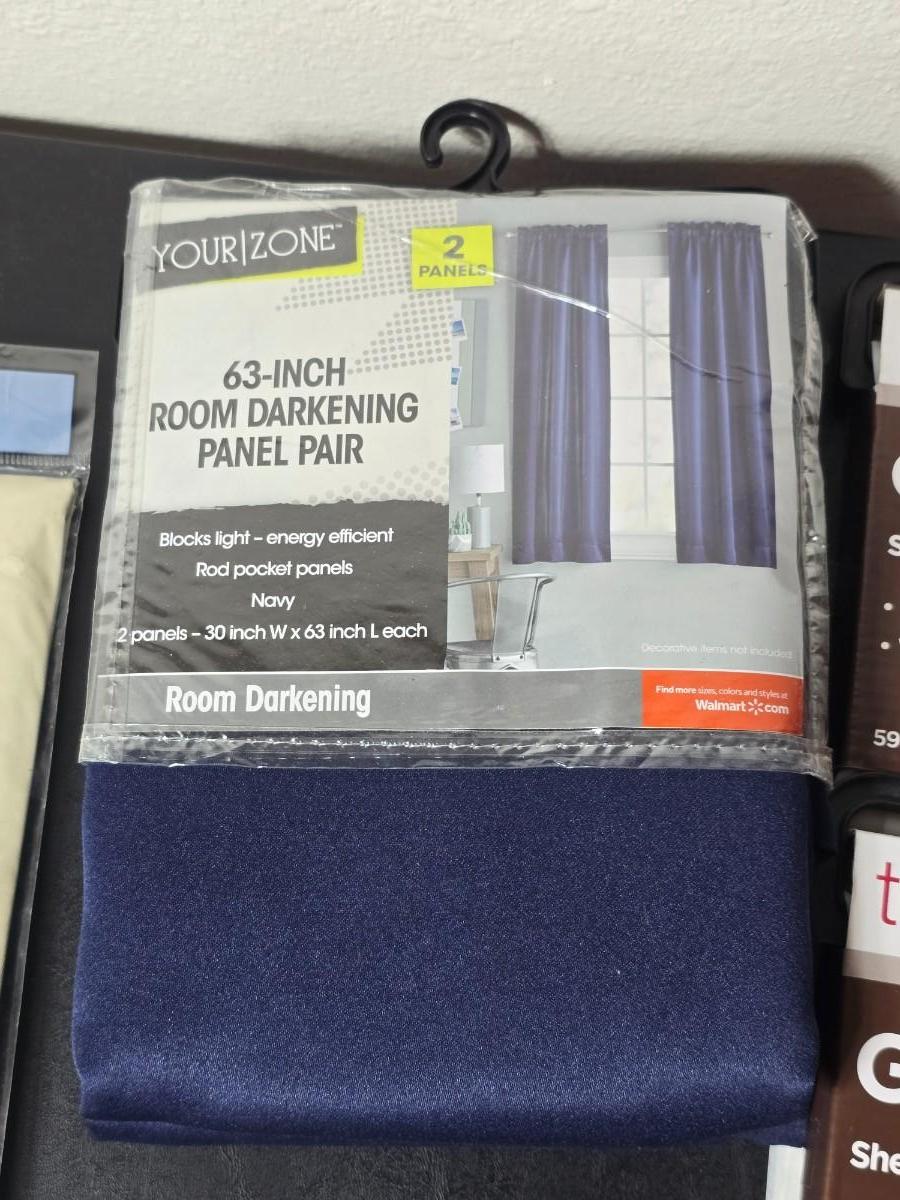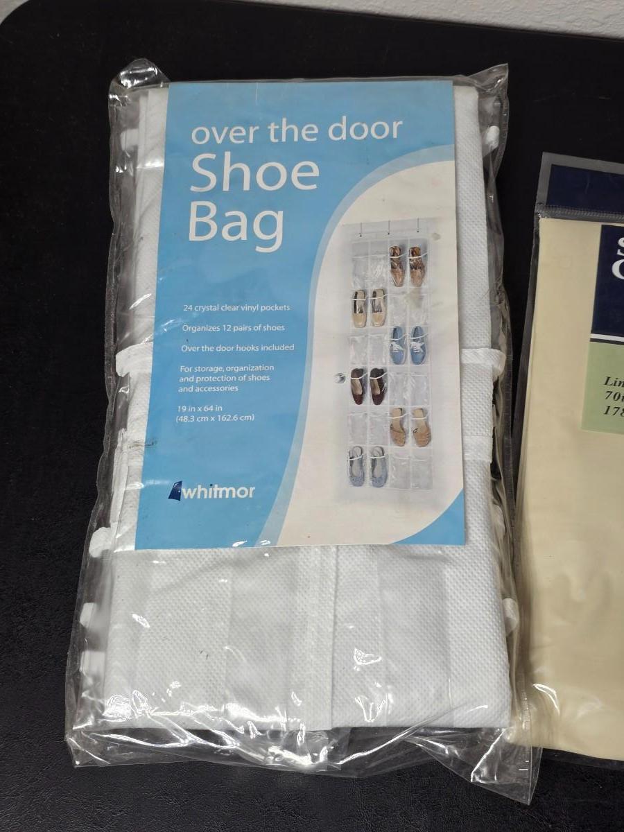 Brand new home must haves! Curtains -Sheer window panel - Shower Curtain liner - Over the door shoe bag