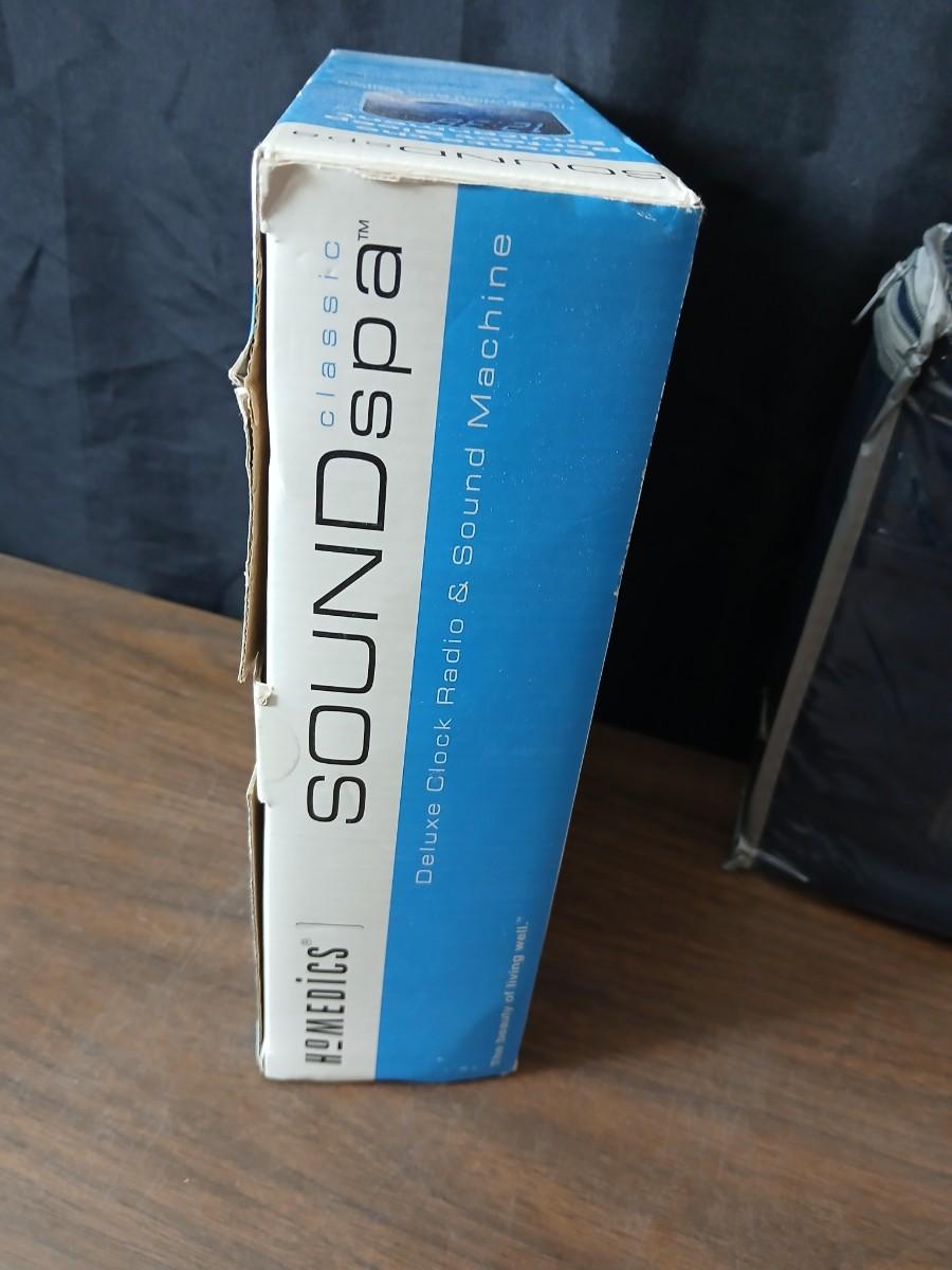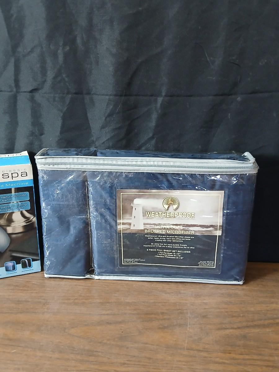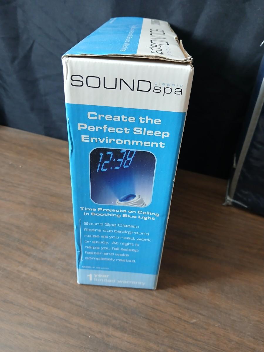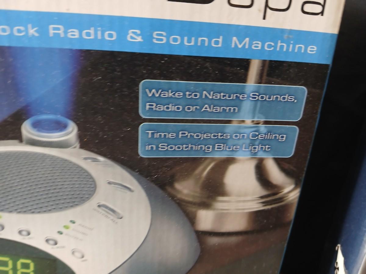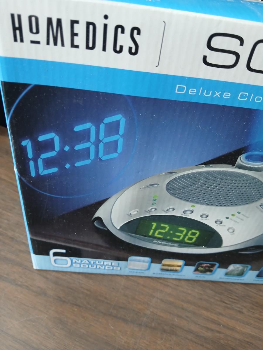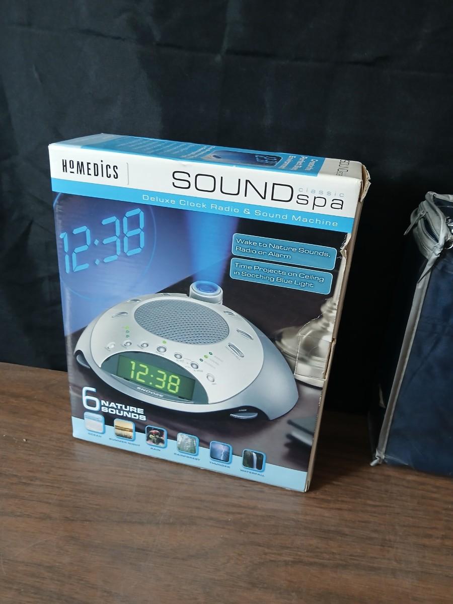Brand new Homedics sound spa alarm clock with projectable time - and a new Full size 6-piece sheet set