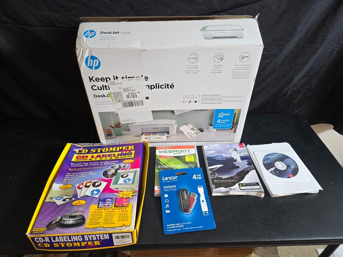 Brand new HP Desk Jet 2724 printer - Lexar 4GP USB Jump drive -and an assortment of computer software
