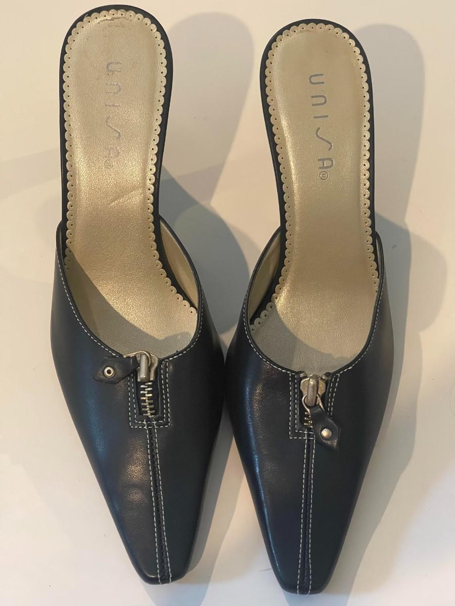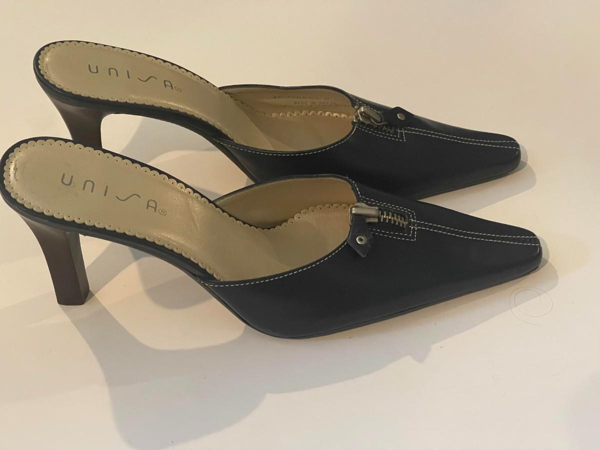 Up for auction is a pair of brand new Unisa ladies navy mules in size 6.5. These mules are perfect for adding a touch of sophistication and comfort to your wardrobe, suitable for various occasions.