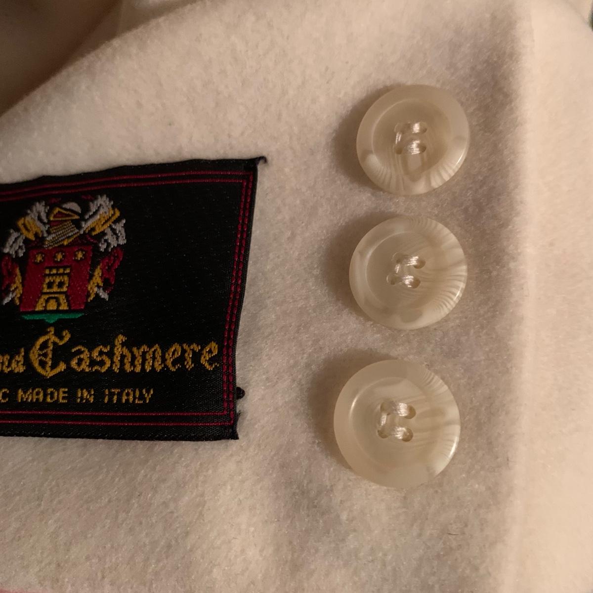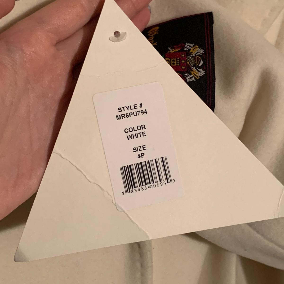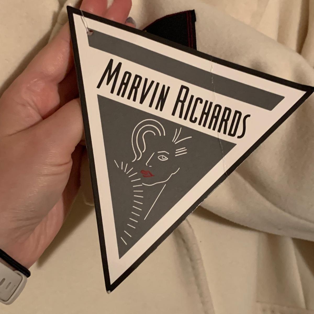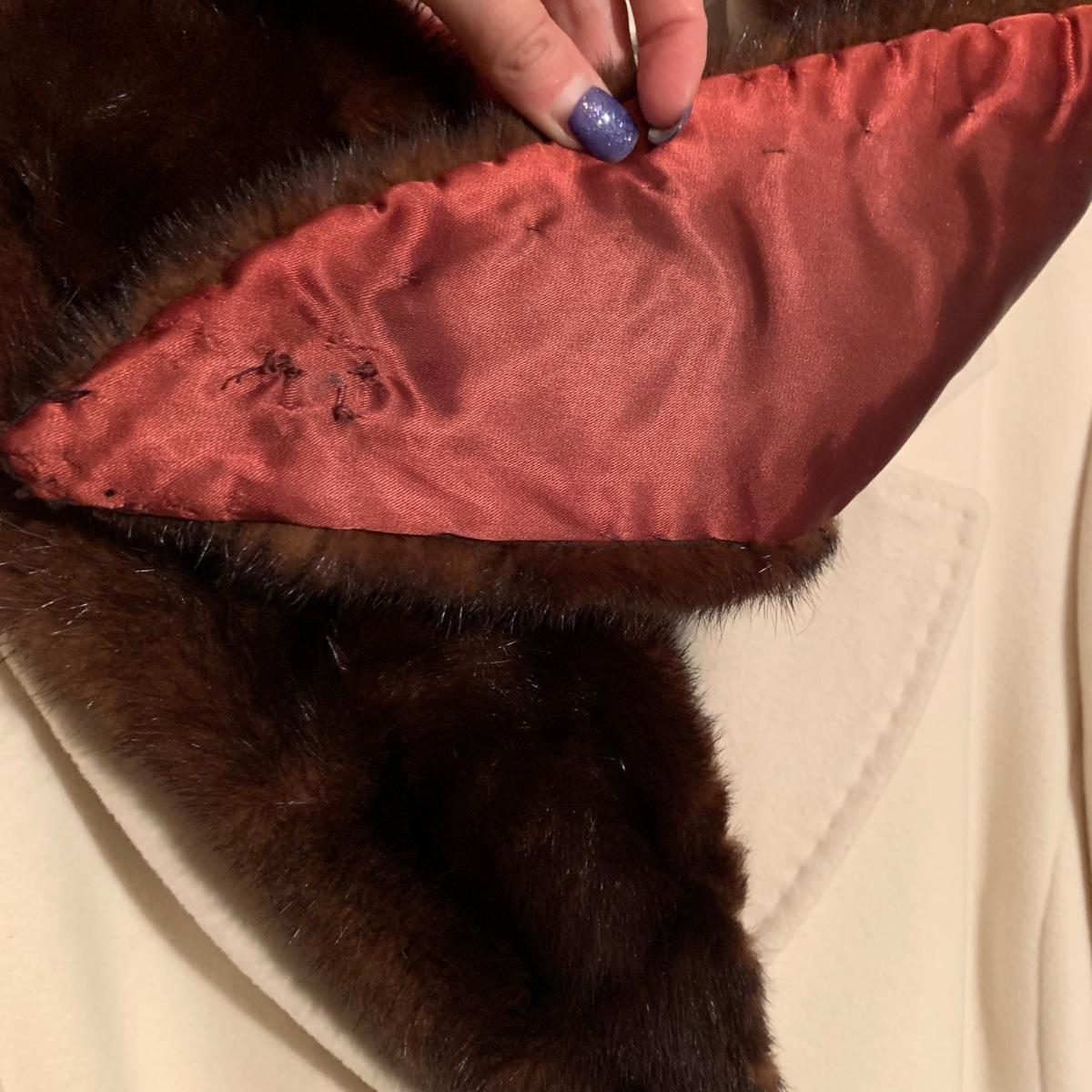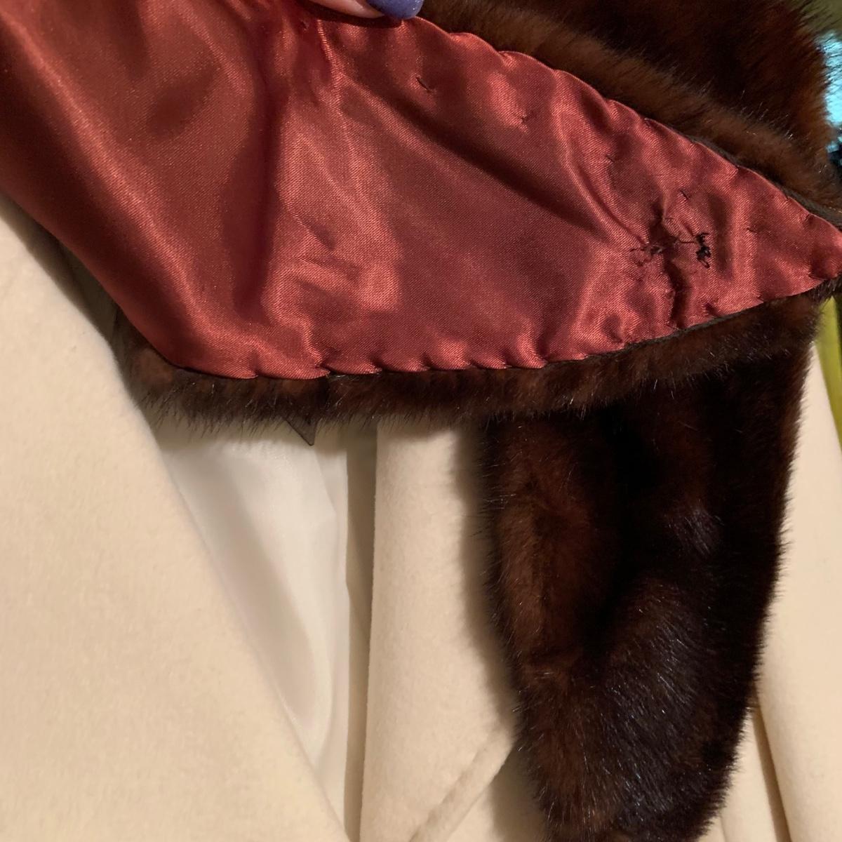 Brand new Ukrainian made Marvin Richards coat, ankle-length, size 4P. A beautiful white coat made of wool and cashmere, with its tag still attached. Coat has been stored wrapped in plastic with cedar blocks to keep the moths away. It is in pristinely excellent condition. Paired with this coat is a soft fur collar scarf. We cannot confirm it is real fur, but it does appear to be. Shipping available.
