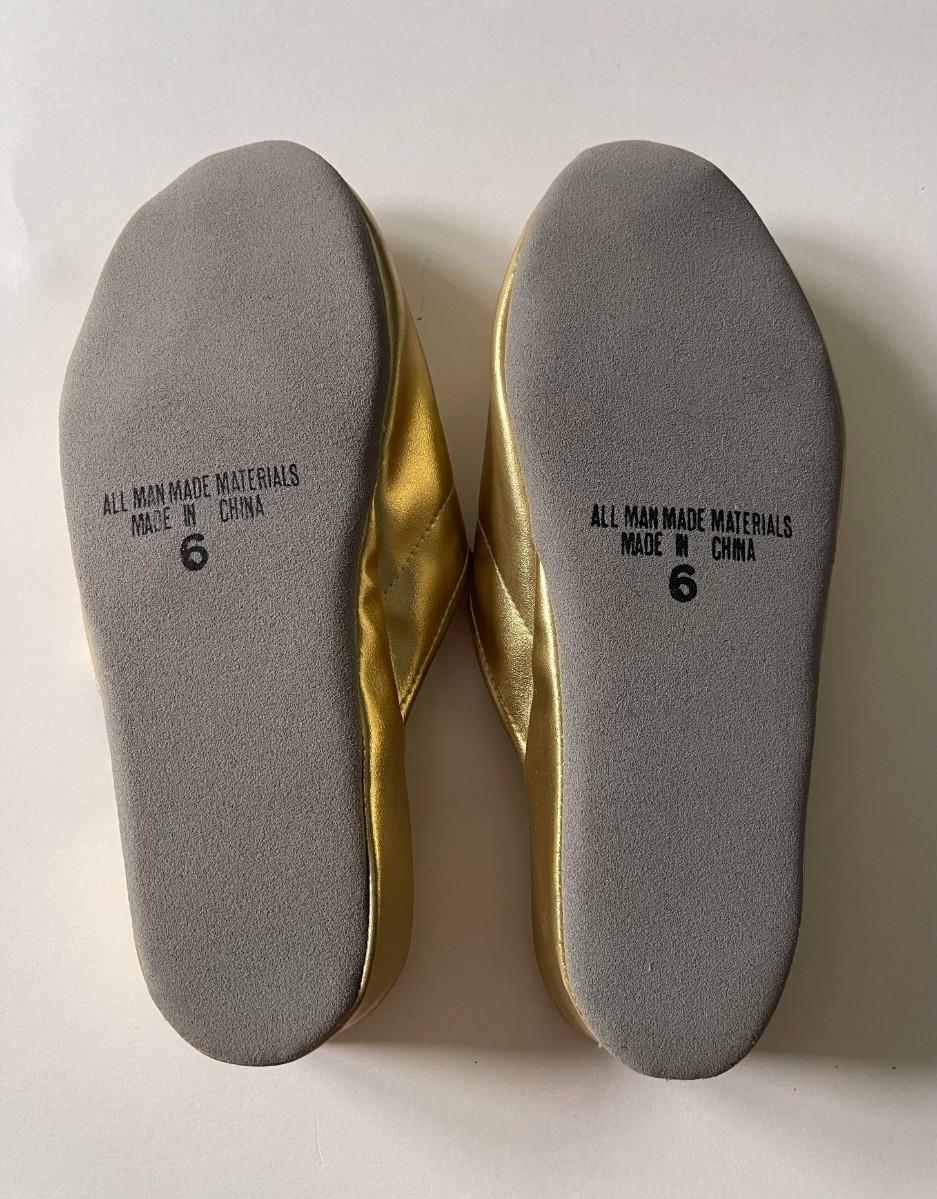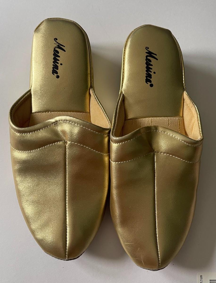 Whether you're dressing up for a night out or looking to add some sparkle to your everyday look, these brand-new Messina gold slippers in size 6 are the perfect choice. Don't miss out on the opportunity to own these beautiful and stylish slippers.