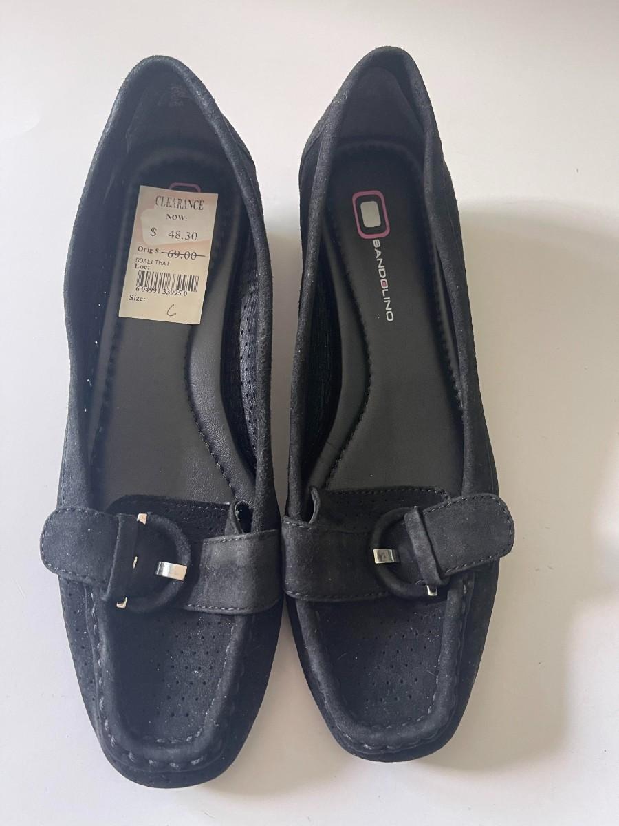 Elevate your wardrobe with these brand new black flats by Bandolino, crafted for the stylish and sophisticated woman. Perfect for both casual outings and professional settings, these flats combine comfort with elegance, ensuring you look and feel your best throughout the day.