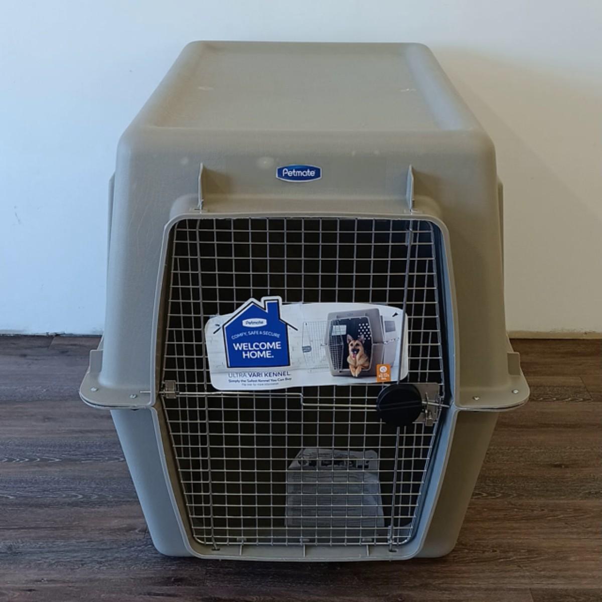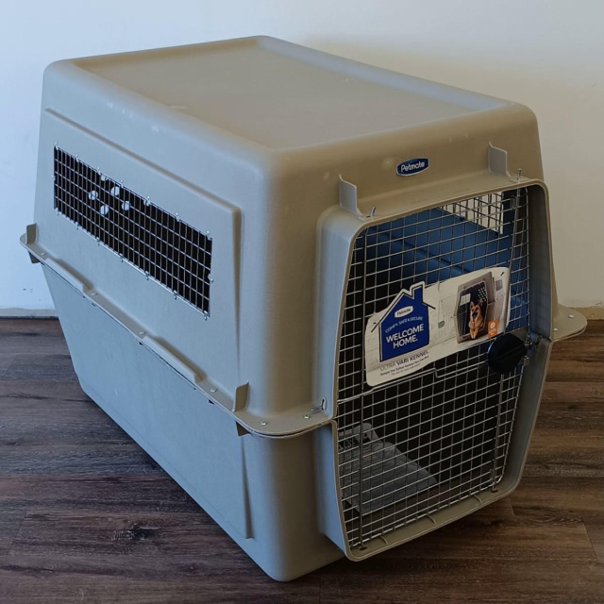 This is a brand new heavy duty plastic mold injected dog crate. The crate measures approximately 32" x 48" x 36".