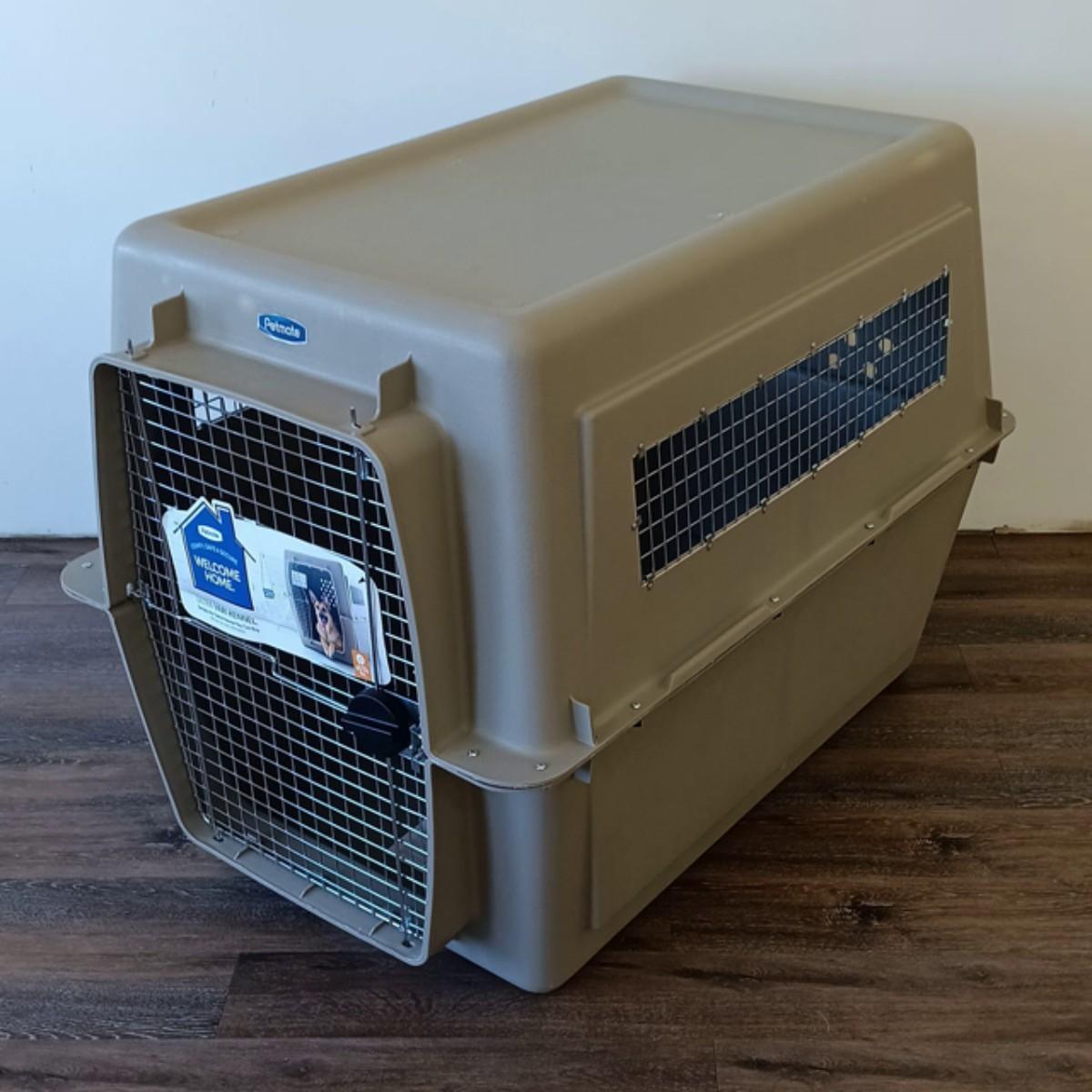 This is a brand new heavy duty plastic mold injected dog crate. The crate measures approximately 32" x 48" x 36".