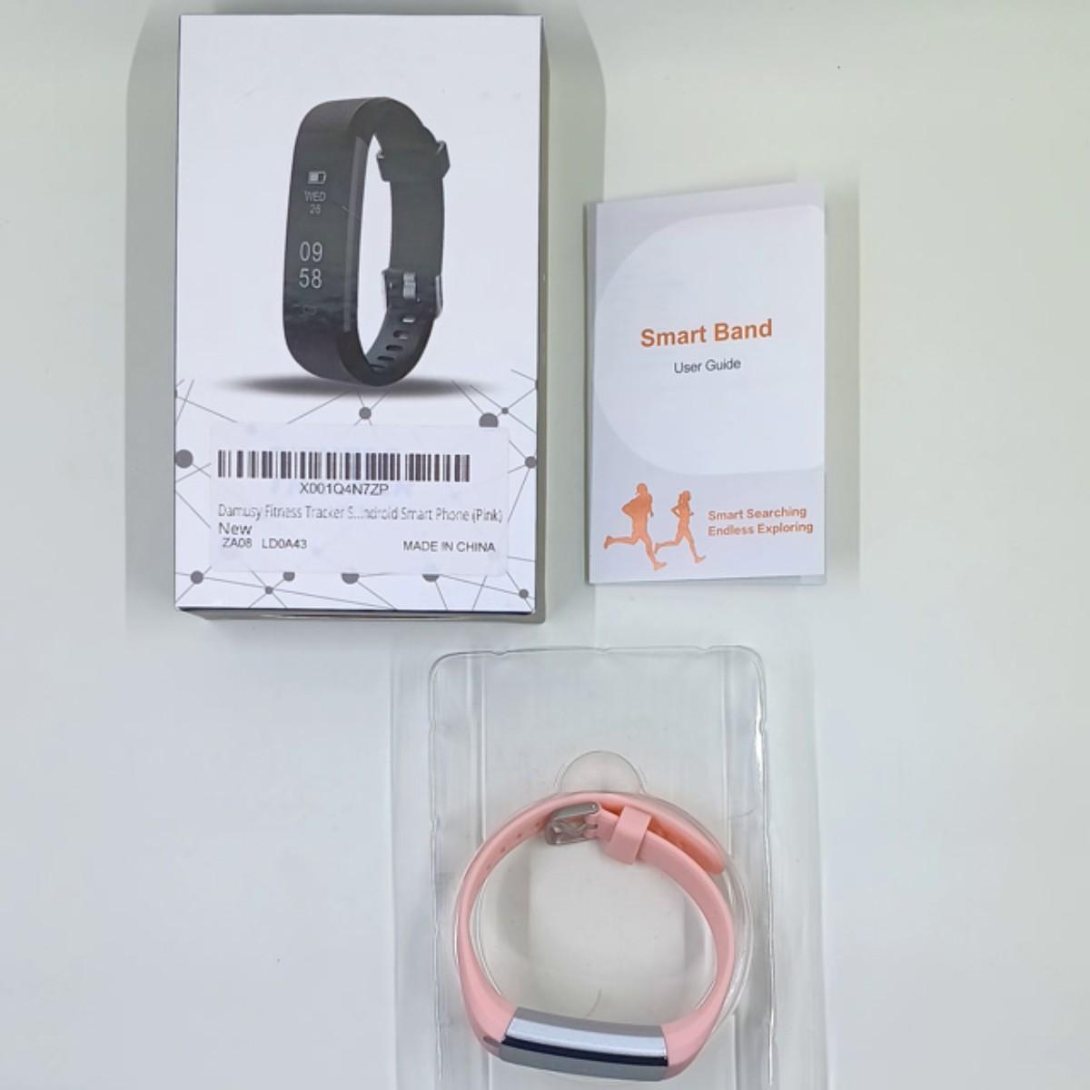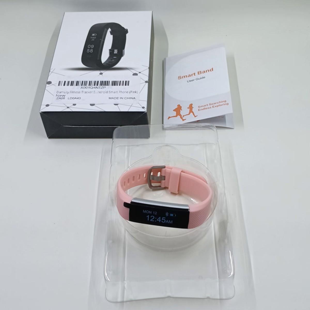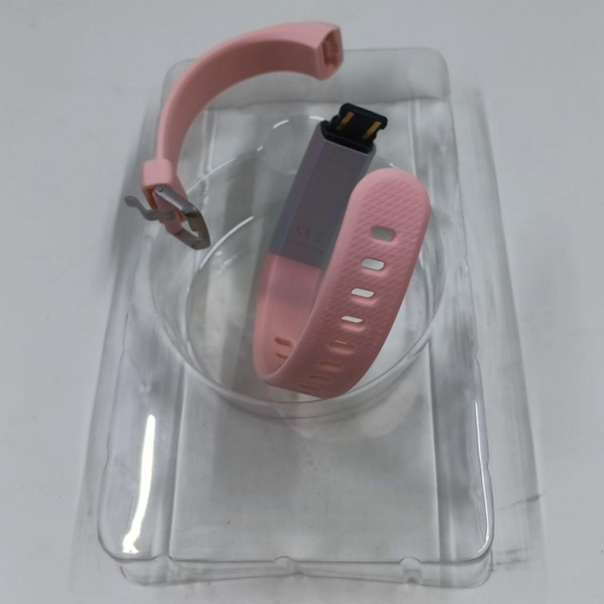 This is a brand new pink in color fitness tracker. This fitness is compatible with both Android and Apple smartphones.