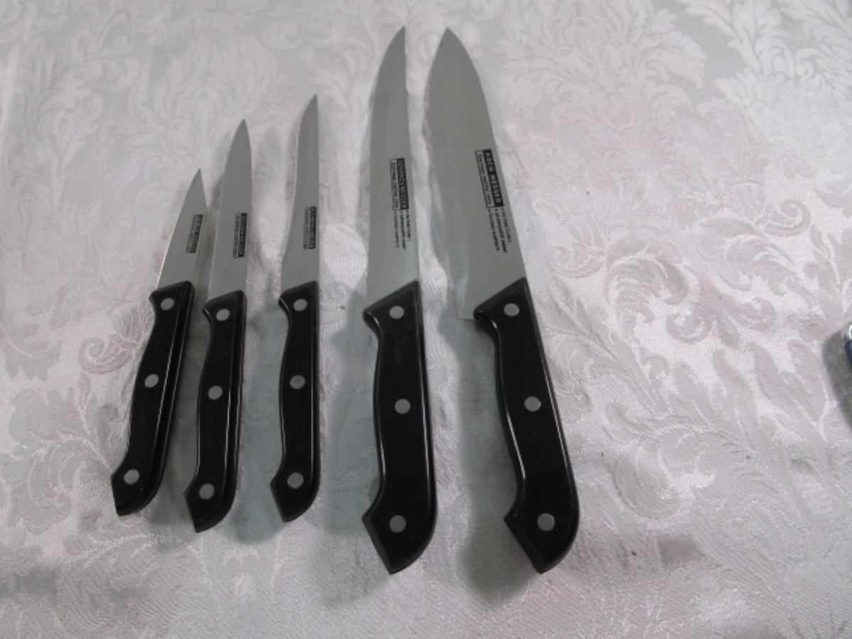 New in box, 2- 8" blade, 5.5" blade, 4.5" blade, 3 " blade
