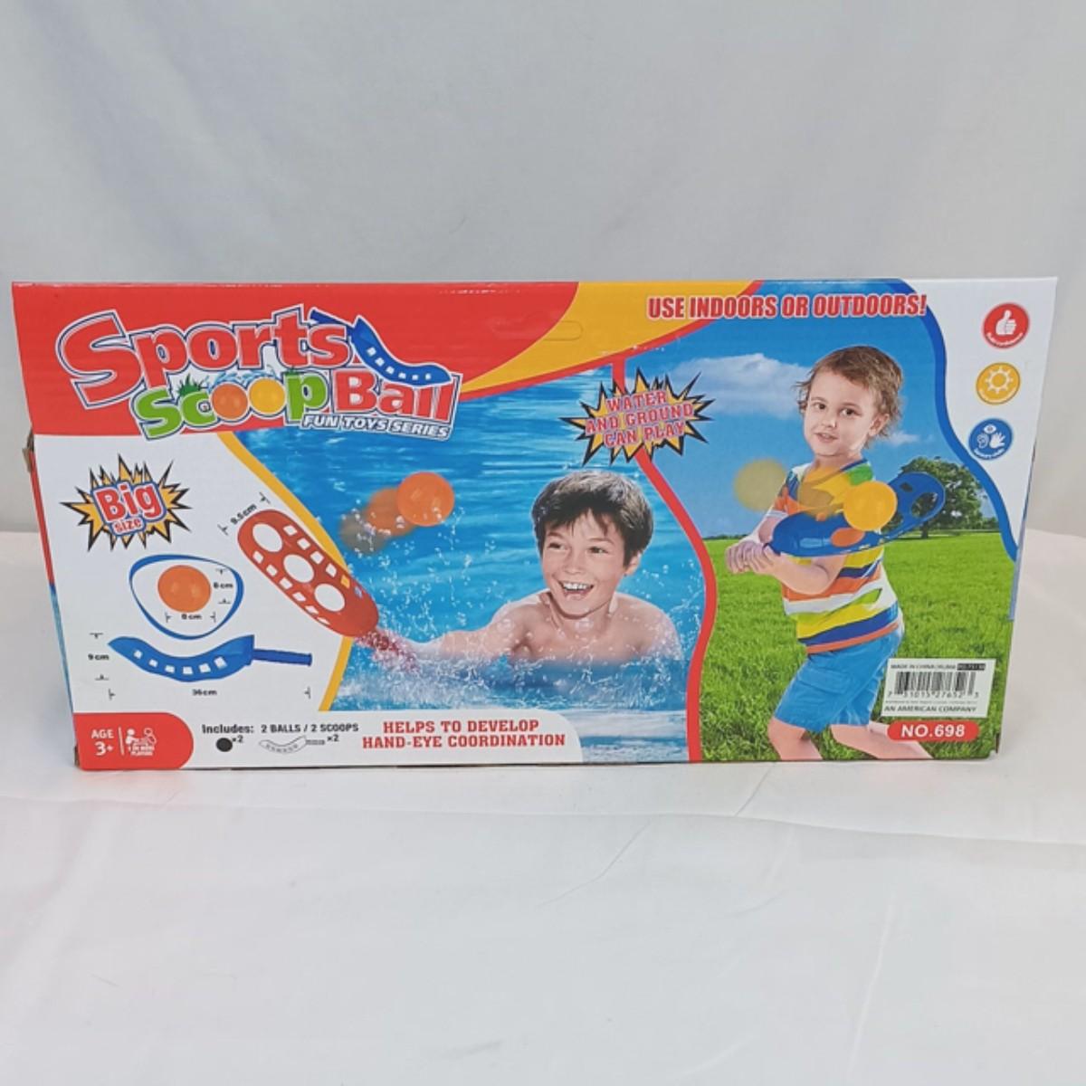 This is a brand new, factory sealed scoop ball play set. The set comes complete with two scoops and two balls.