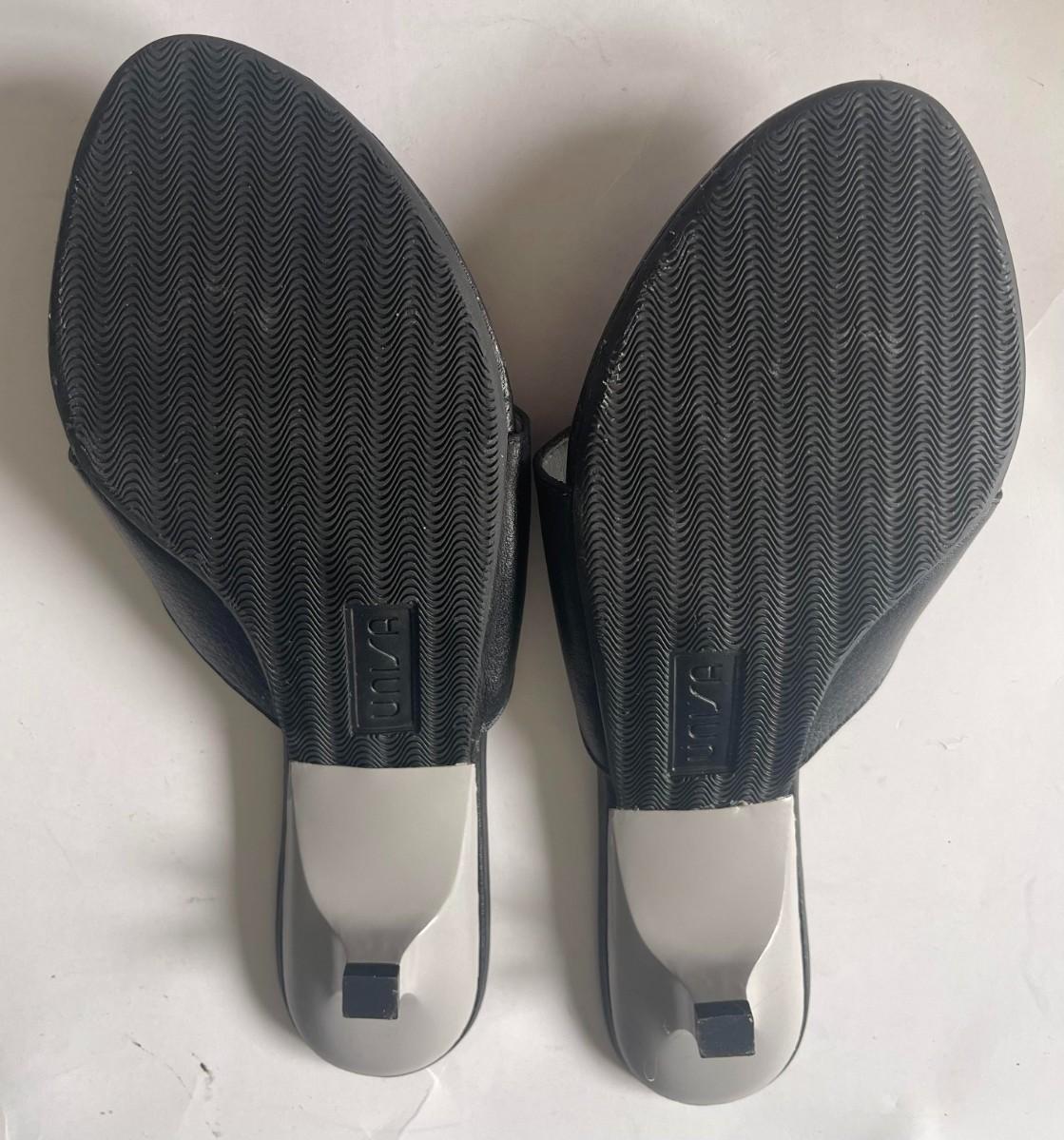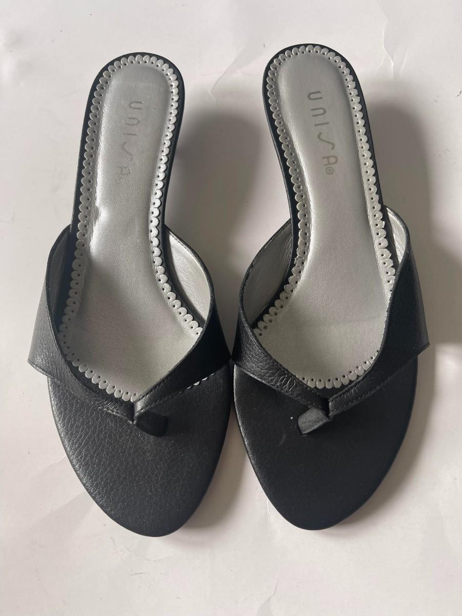 Add a touch of sophistication to your wardrobe with these brand new Unisa sandals! Up for auction is a chic pair featuring a sleek black strap and a comfortable low heel. Perfect for any occasion, these sandals are a must-have for any fashion-forward individual.