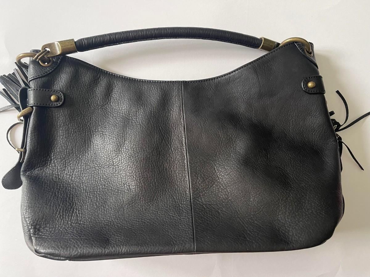 This stunning black leather shoulder bag by Alfani combines elegance and practicality, making it a perfect accessory for any occasion. Crafted from high-quality genuine leather, this bag offers durability and a timeless style. The spacious interior is designed to hold all your essentials, while multiple pockets ensure everything stays organized. The adjustable shoulder strap provides comfort and versatility, and the secure zip closure keeps your belongings safe.