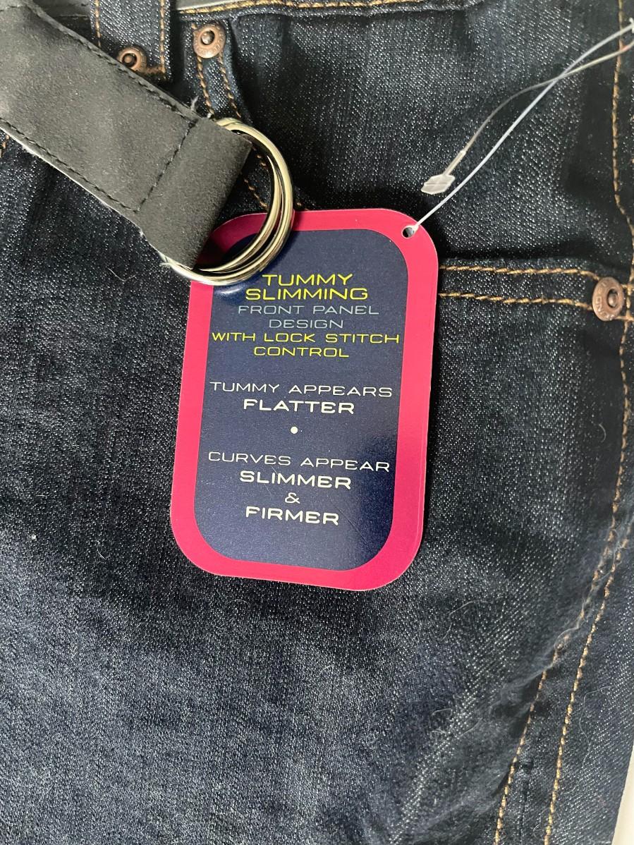 Up for auction is a brand new pair, still with tags, in size 8. Featuring a tummy slimming front panel design and a chic braided belt, these jeans are perfect for any fashion-forward individual.
