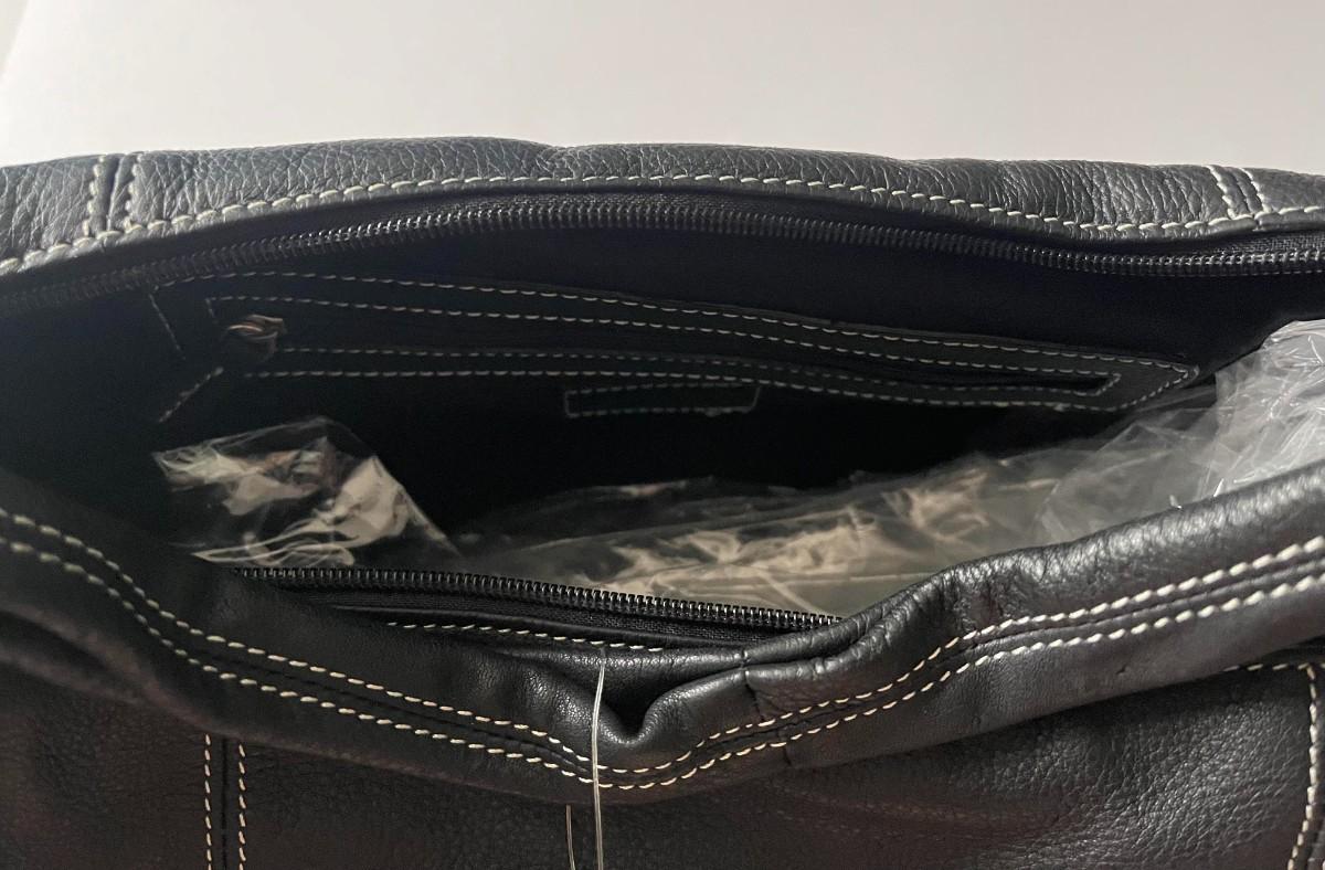 This brand-new black leather hobo bag by Tignanello is the perfect blend of sophistication and practicality. Crafted from high-quality genuine leather, this hobo bag offers a timeless design that suits any occasion. The spacious interior provides ample room for all your essentials, while multiple pockets keep your belongings organized and easily accessible. The comfortable shoulder strap ensures a perfect fit, and the secure zip closure adds an extra layer of protection for your items.
