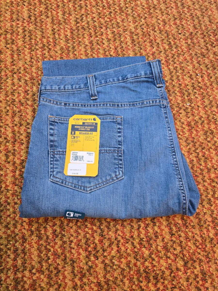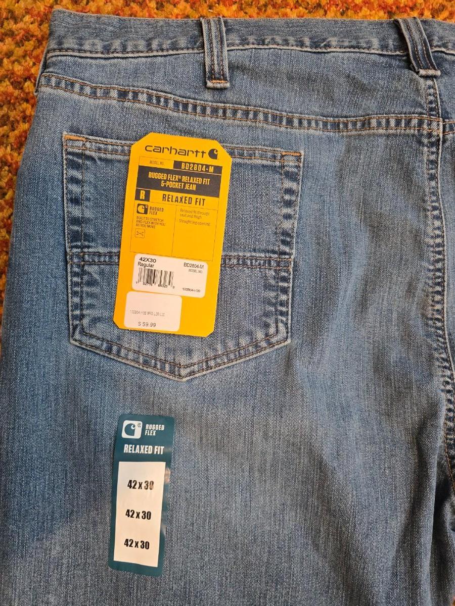 Brand new with tags! Carhartt Rugged Flex Relaxed Fit 5-Pocket Jeans in a light blue wash, size 42x30.