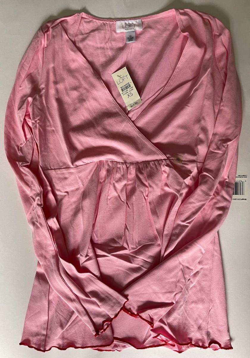Brand New with Tags Pink Long Sleeved V-Neck Top by Loft, Size XS