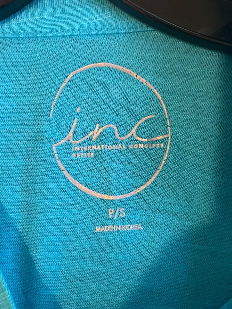 Brand New w/Tags INC Turquoise Ruched Button-Up Blouse, Size PS