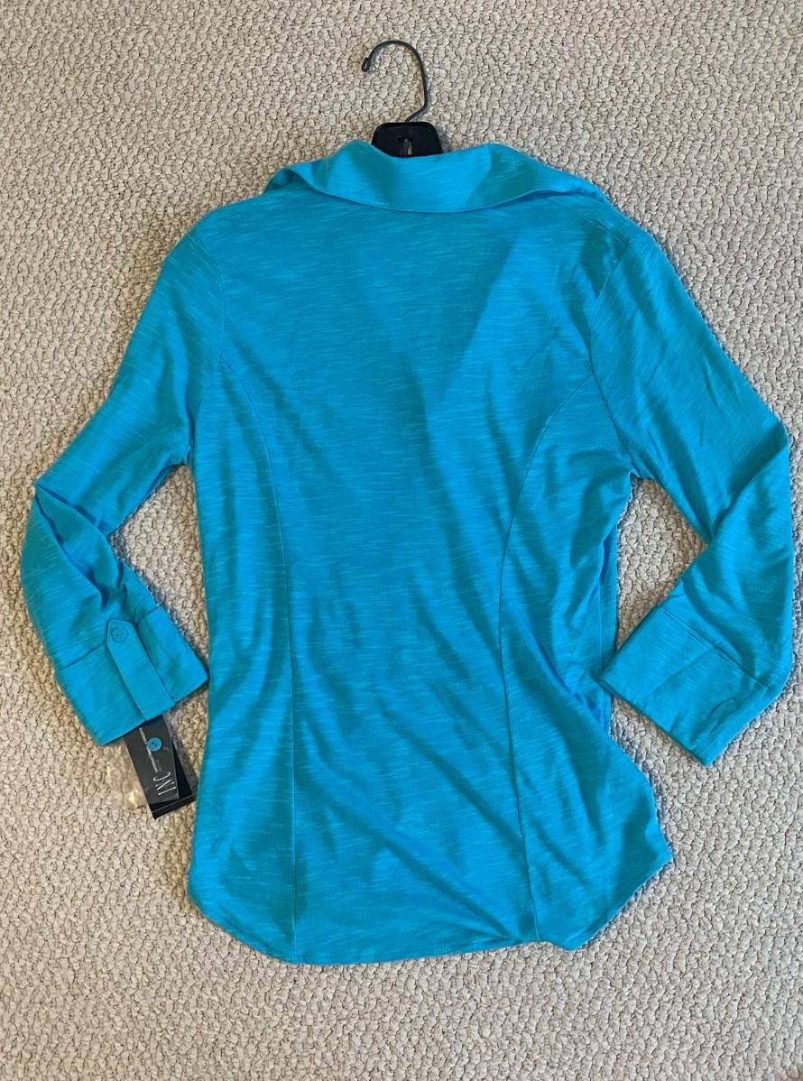 Brand New w/Tags INC Turquoise Ruched Button-Up Blouse, Size PS