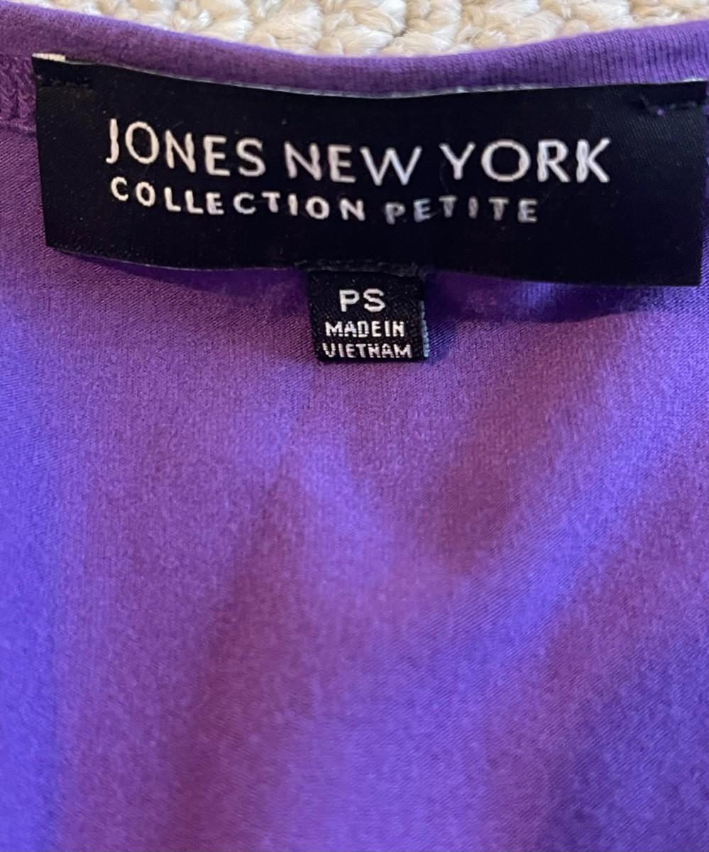 Add a touch of elegance to your wardrobe with this brand new Jones New York purple long-sleeved tee. Crafted from a luxurious blend of rayon and spandex, this tee offers both comfort and style, making it a versatile addition to any closet.