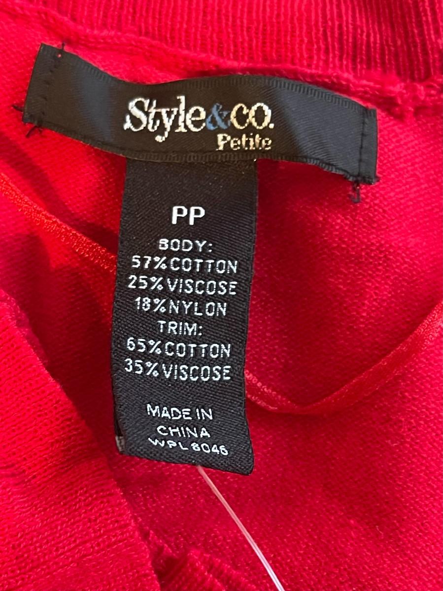 Get ready to add a splash of vibrant color to your wardrobe with this stunning red sweater from Style&Co. This Petite PP size sweater features an elegant ruffled trim that adds a touch of sophistication to any outfit. Perfect for both casual and dressy occasions, this versatile piece is made from a comfortable blend of cotton, viscose, and nylon, ensuring a cozy fit. Made in China, this high-quality sweater is brand new with tags, making it a perfect addition to your collection or a wonderful gift.