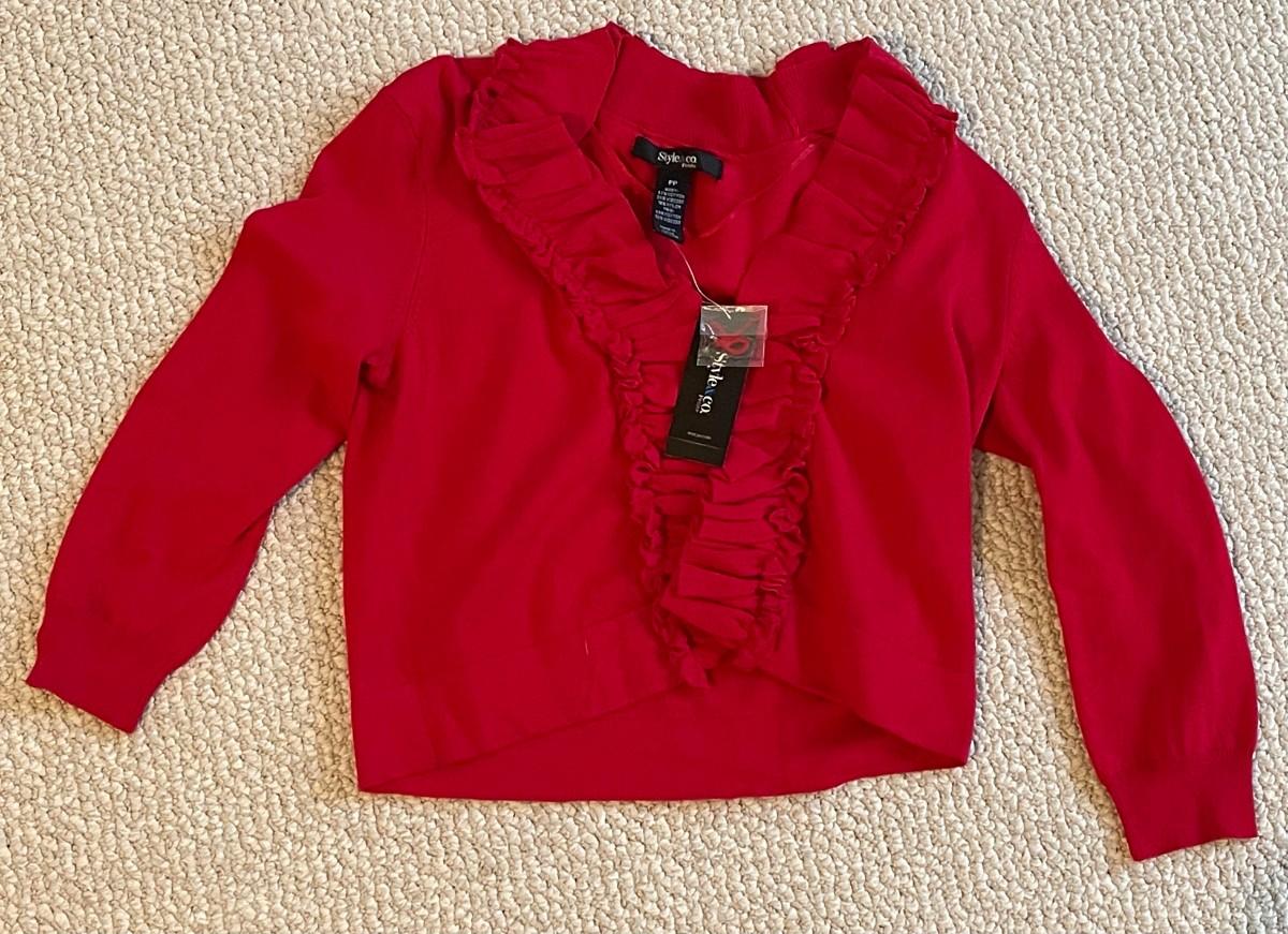 Brand New w/Tags Style&Co. Petite PP Red Ruffled Sweater