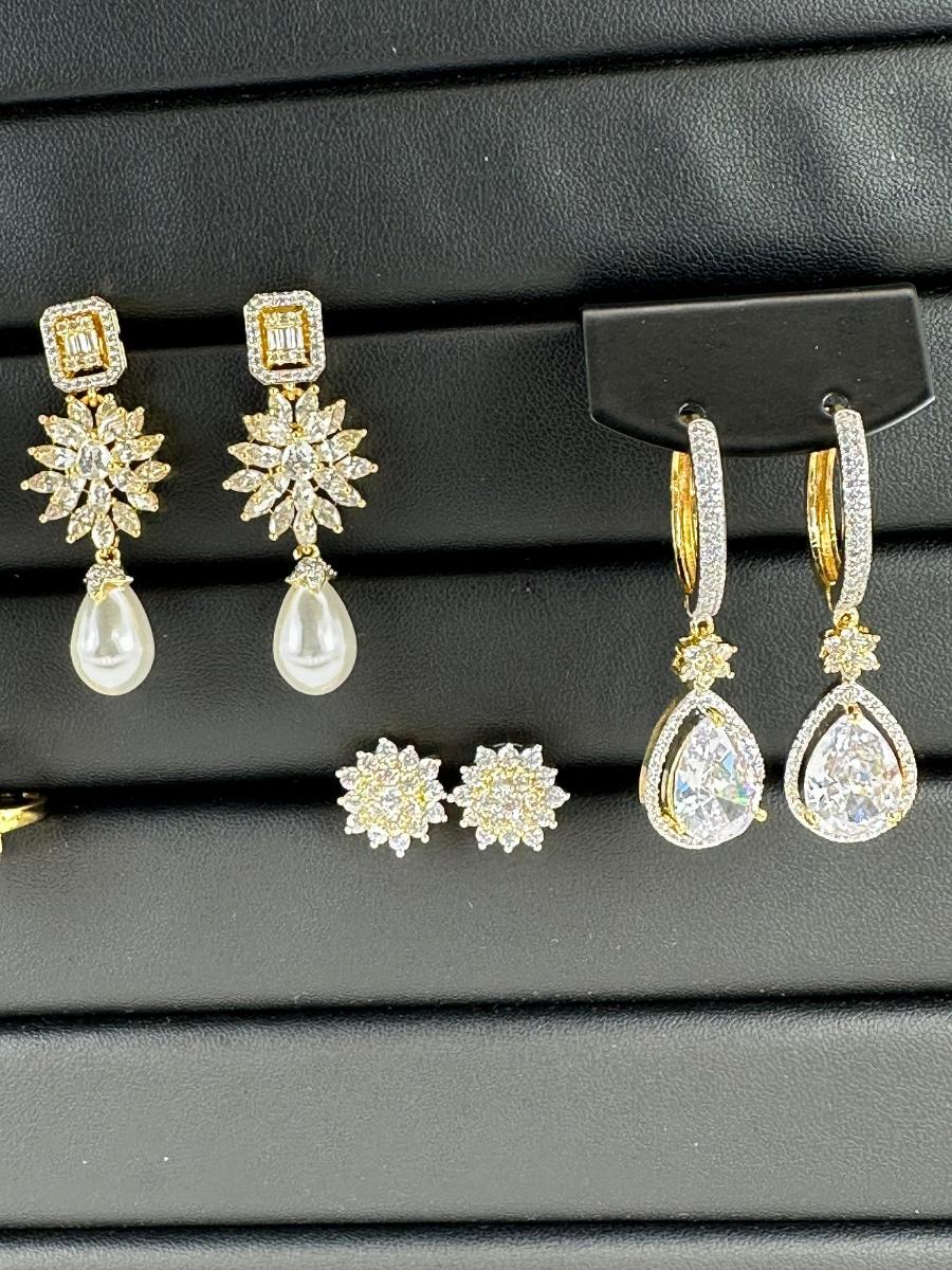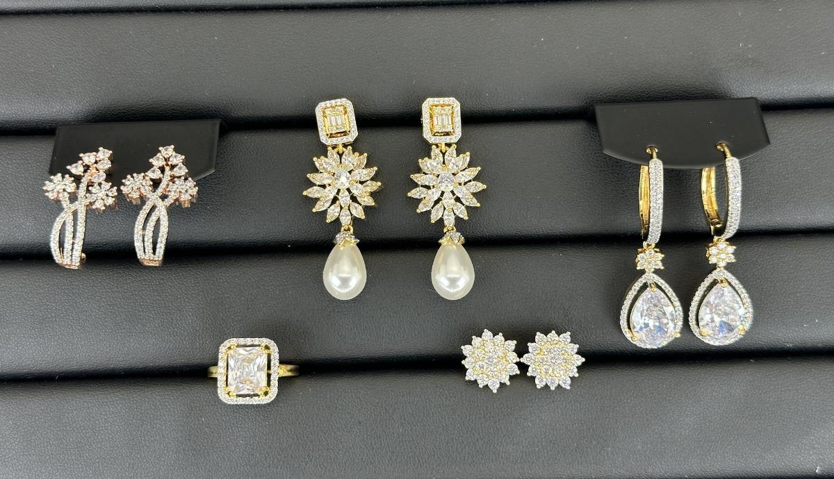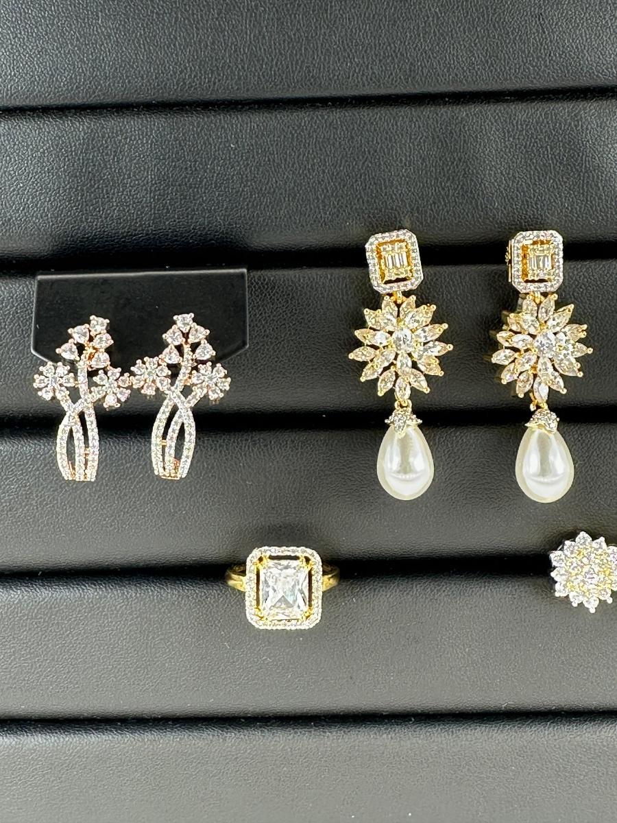 Brand New Zirconia Earrings And Ring Rhodium Plating Mix Lot