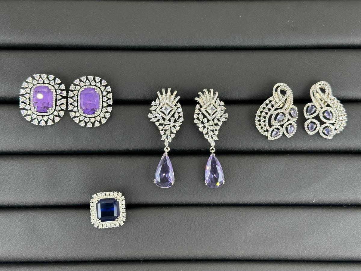 Brand New Zirconia Earrings And Ring Rhodium Plating Mix Lot