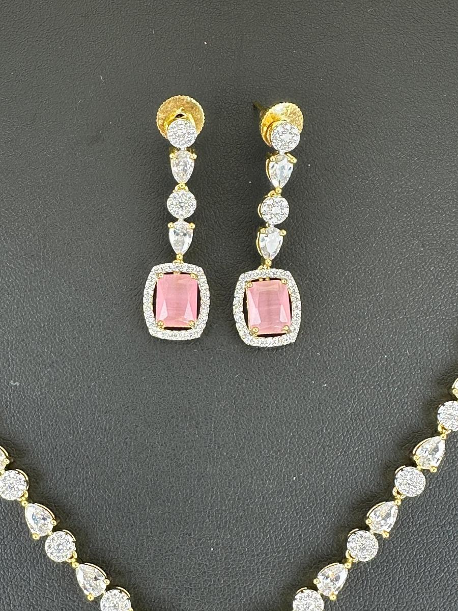 1. Brand New Zirconia Earrings and Necklace Rhodium Plating