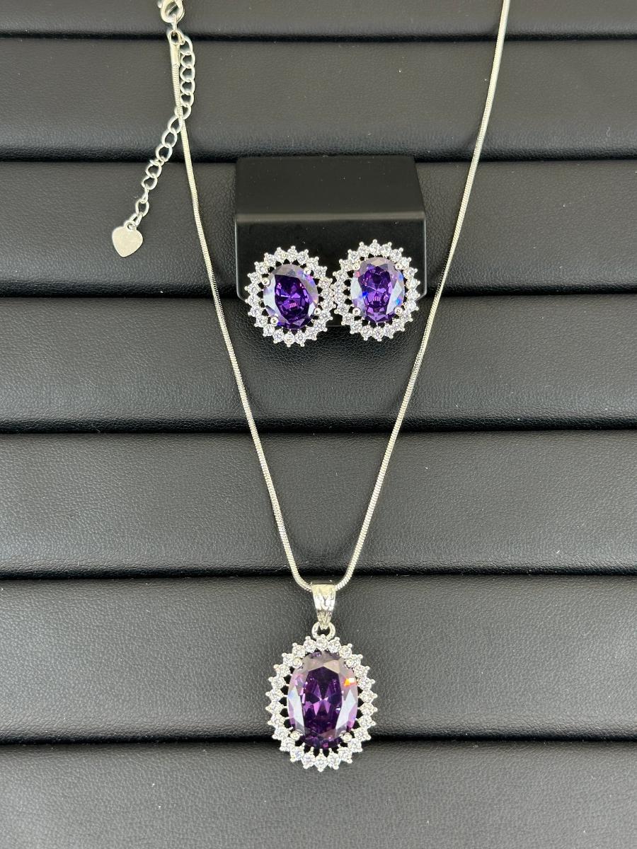 1. Brand New Zirconia Necklace and Earrings Rhodium Plating
