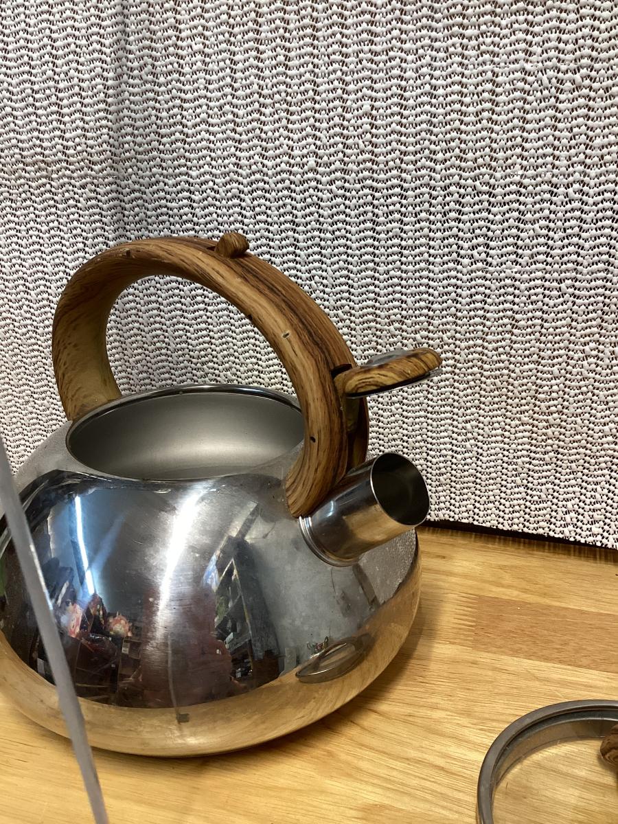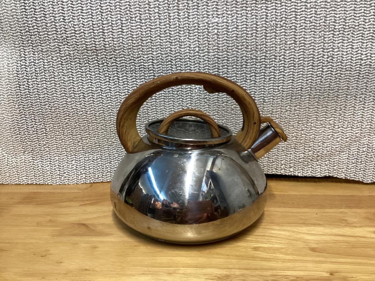 Brandani Italian faux wood soft touch 3.0 qt. whistling stainless steel kettle