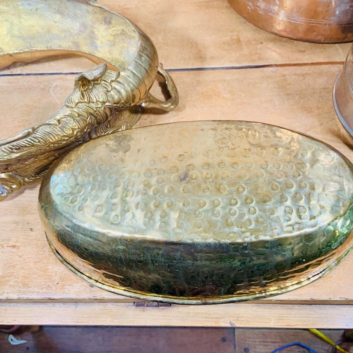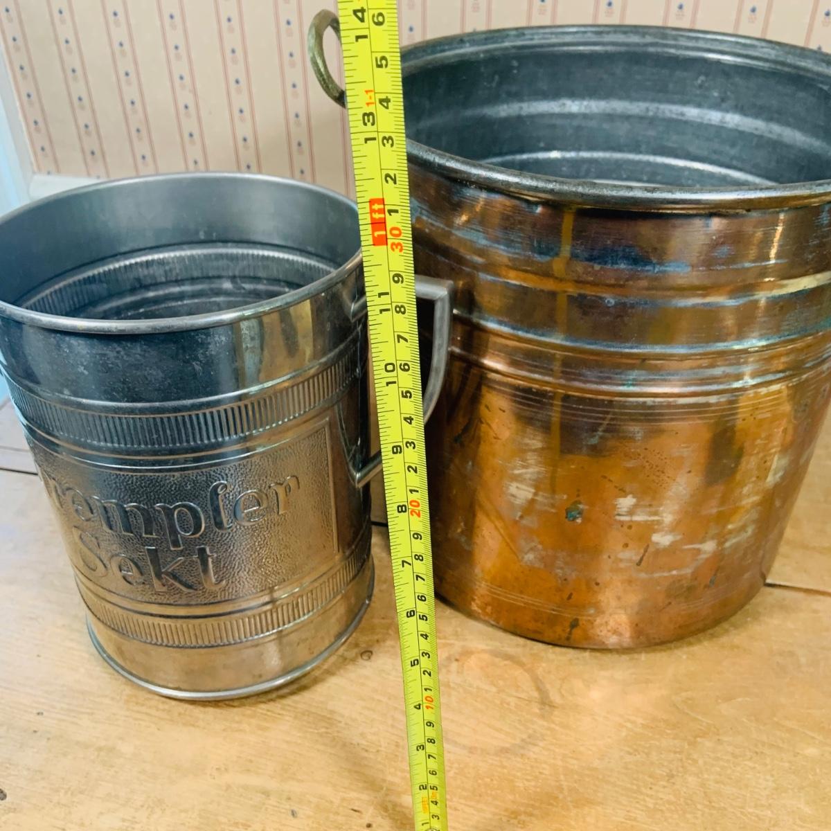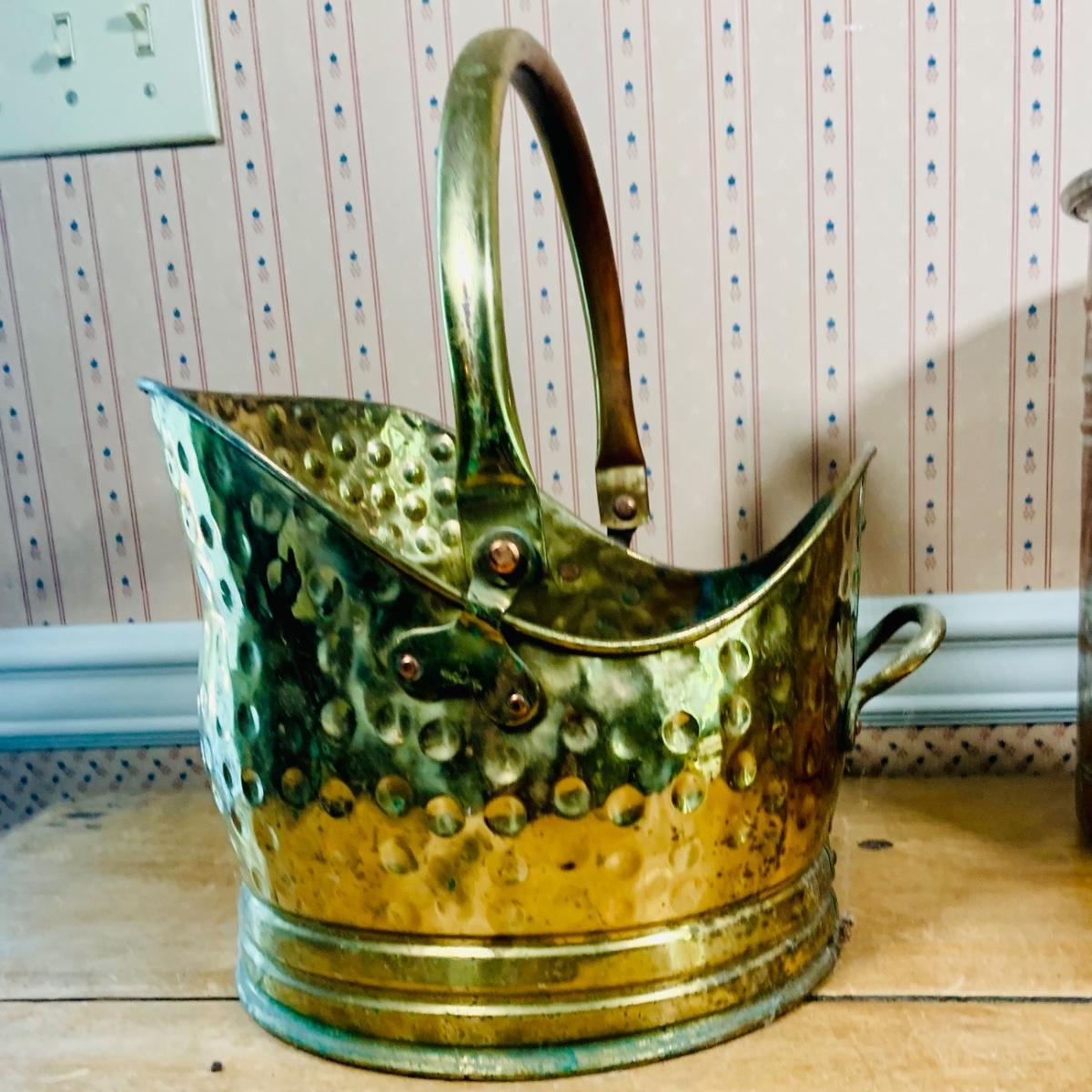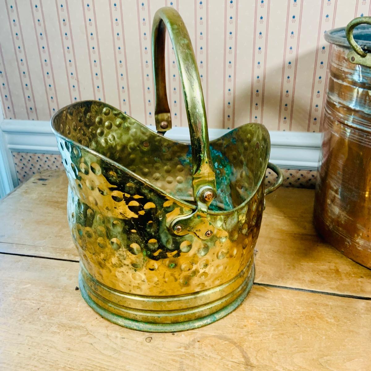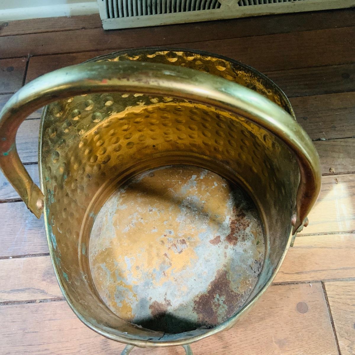 Lot 275: Brass Fireplace Accesories and Other Cooper, Brass and Metal Bucket and Bowls.