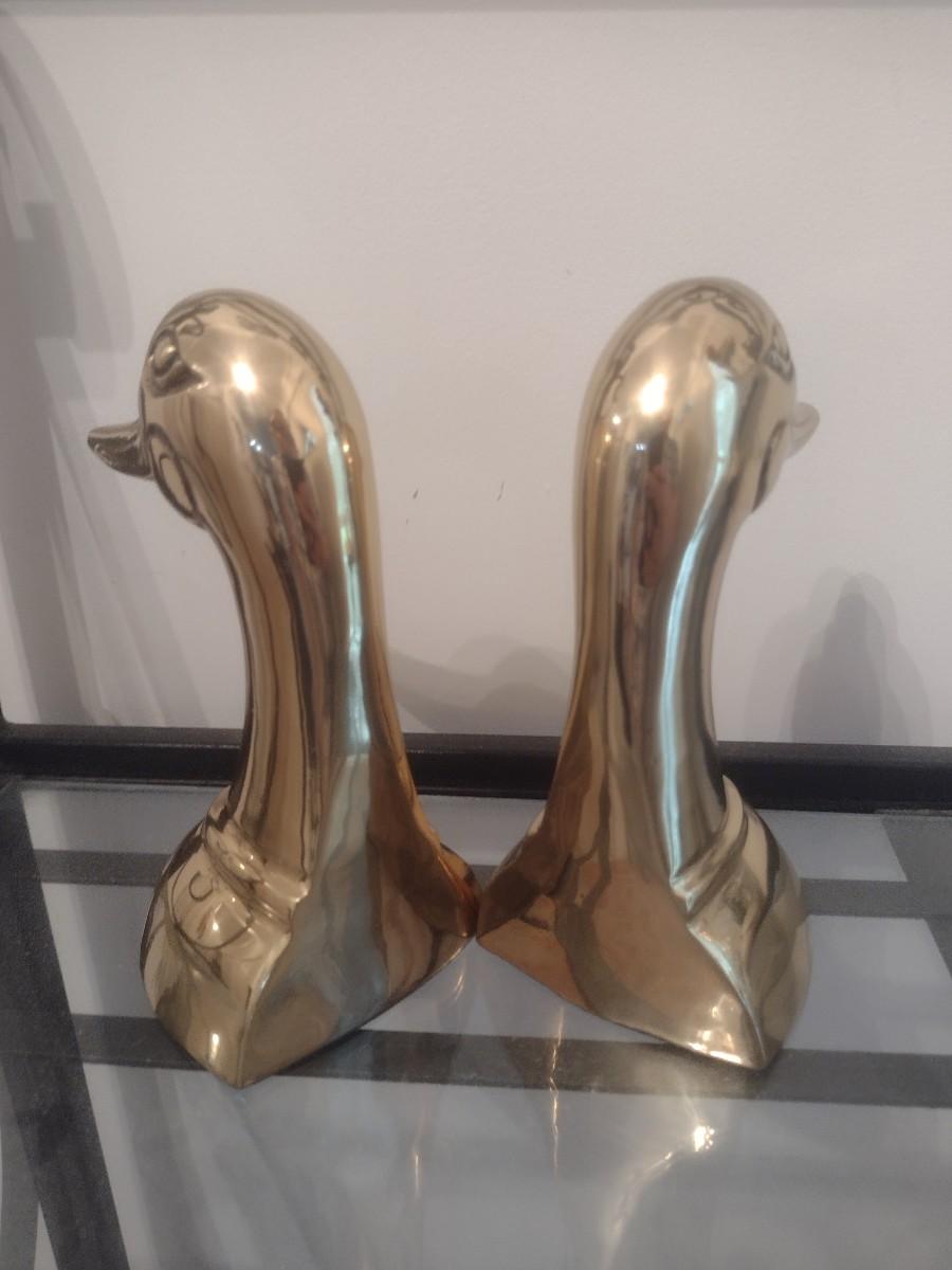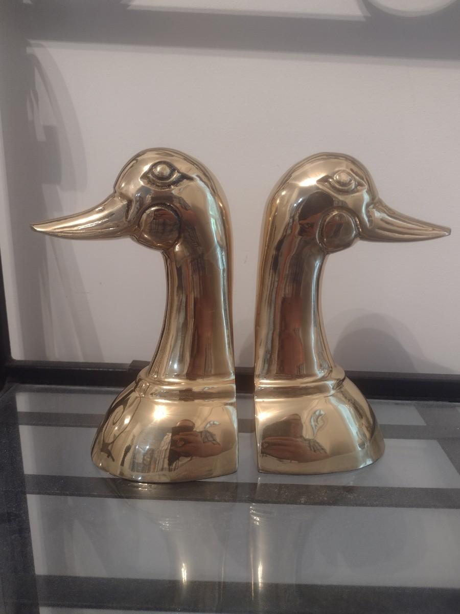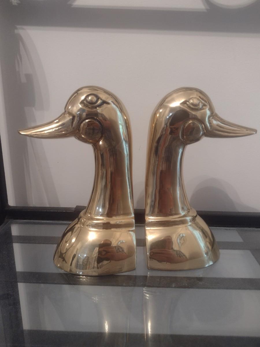 Brass Duck Head Book Ends