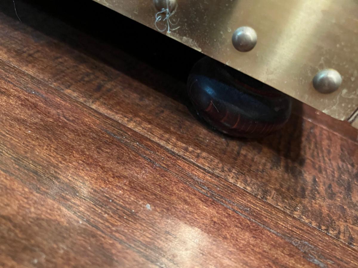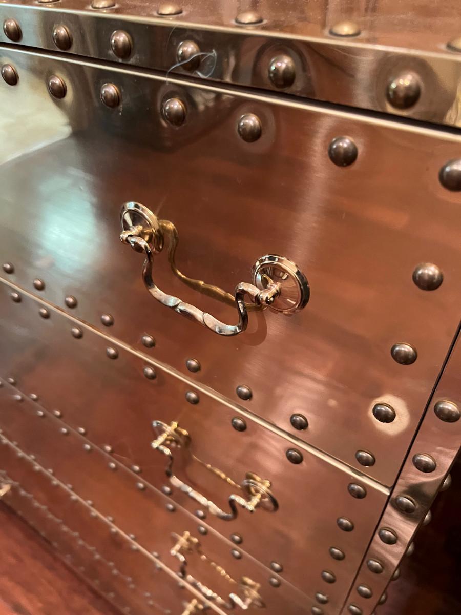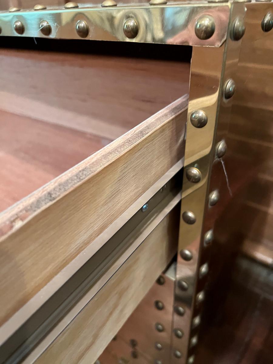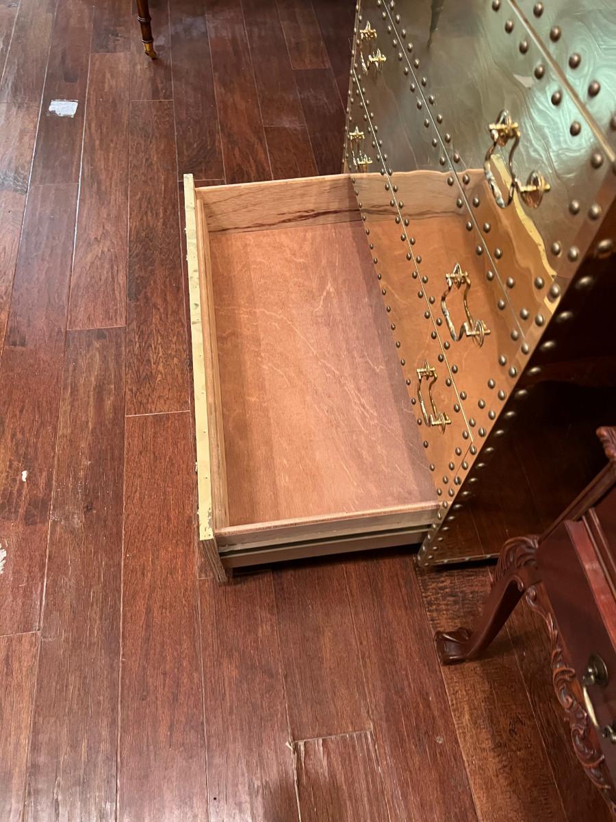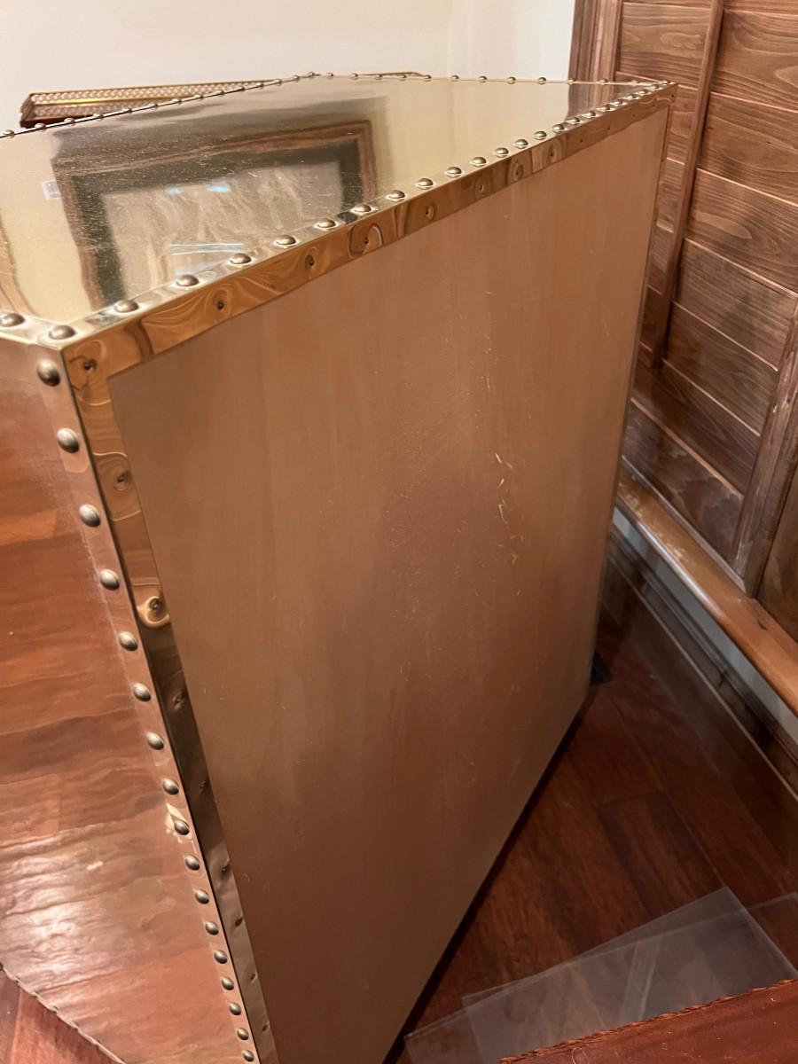 Brass 4-Drawer Chest of Drawers. Excellent condition, beautiful designer piece. 34" wide, 20" deep, 41" tall, wood ball foot.. approximately 65 pounds.