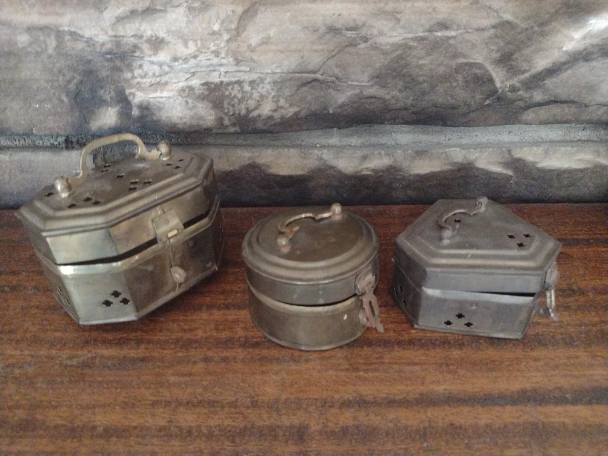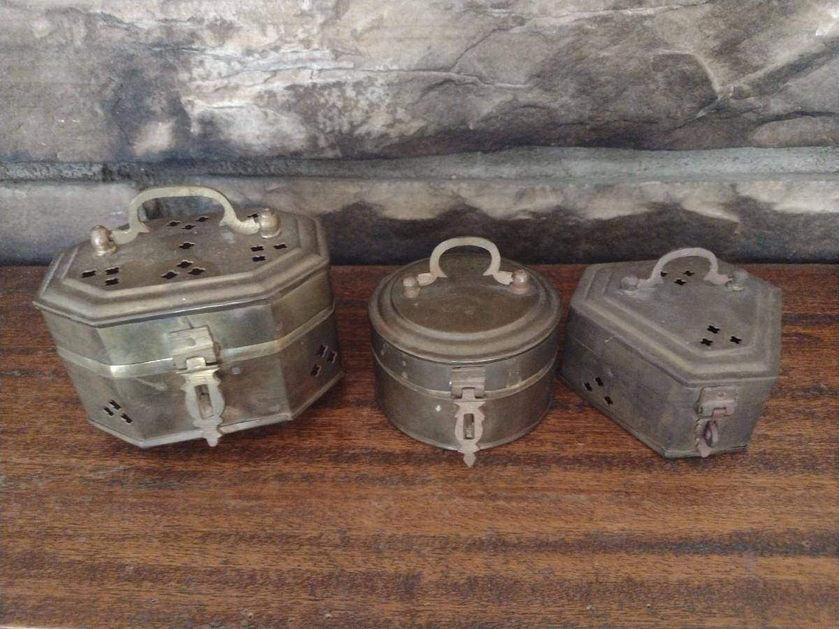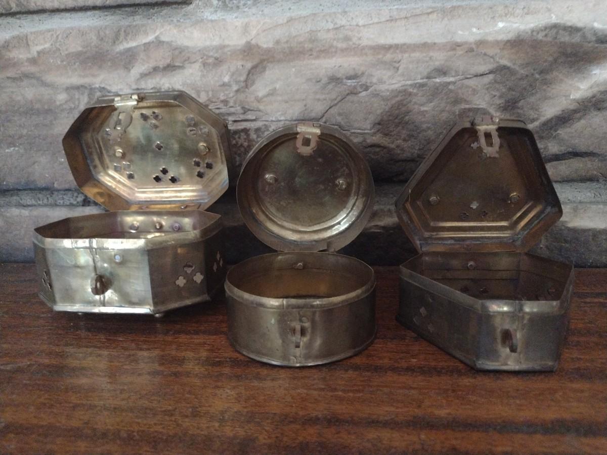Set of Three Brass Incense or Trinket Boxes