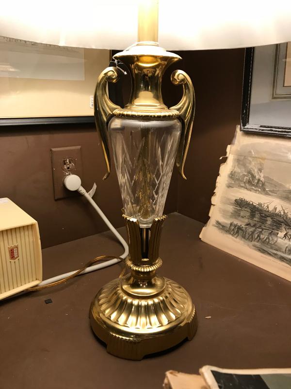 Lot 75-Brass and Cut Crystal Lamp with Shade