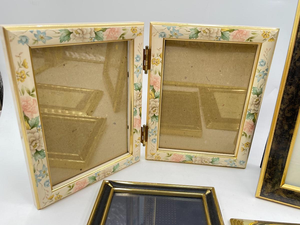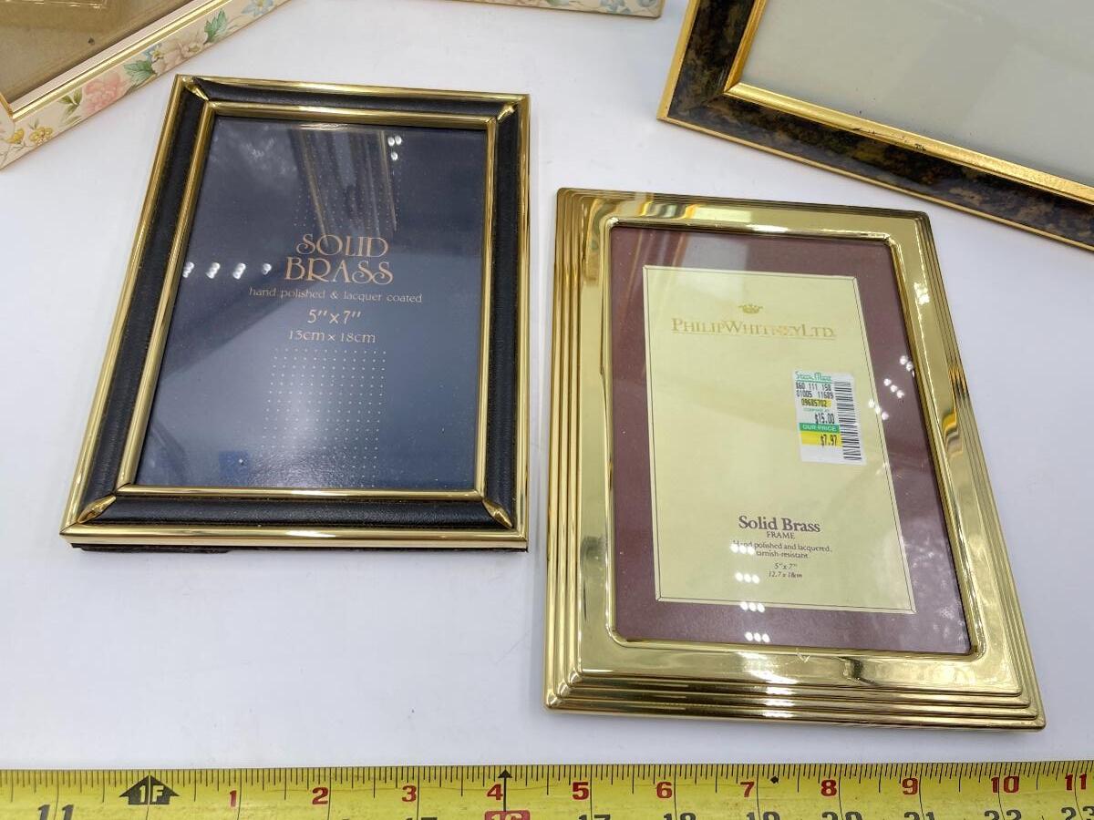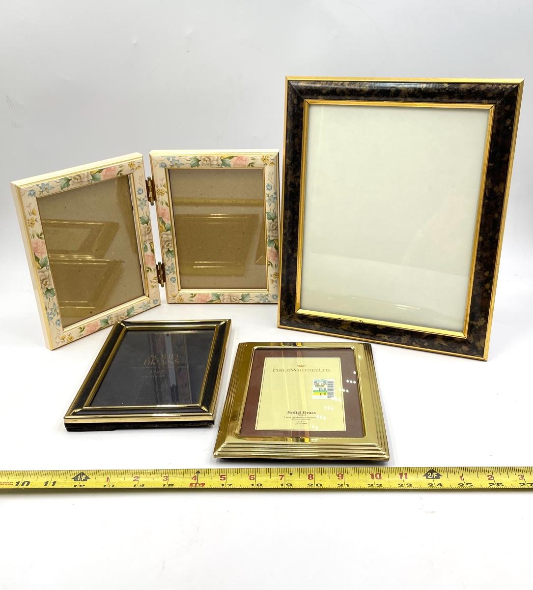 BRASS AND FLORAL PICTURE FRAMES SET OF 4