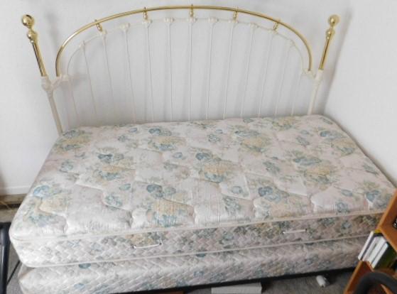 Brass and Iron King Bed Head Board with Twin Mattress  and Frame