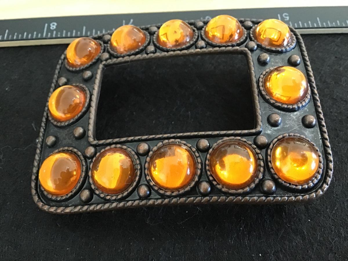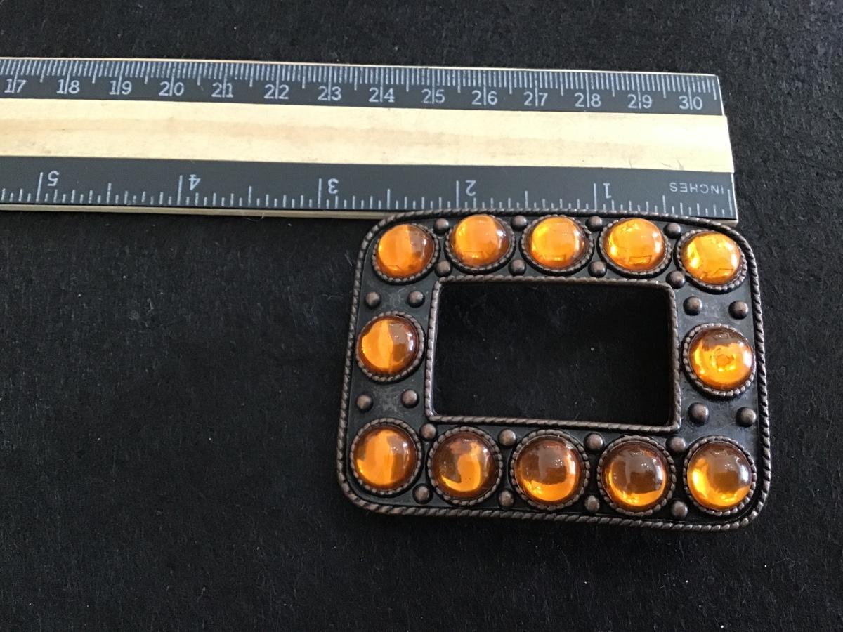 Brass and Orange Boho Belt Buckle Hippie