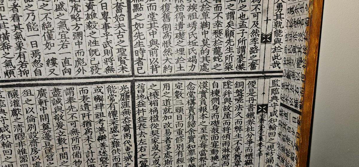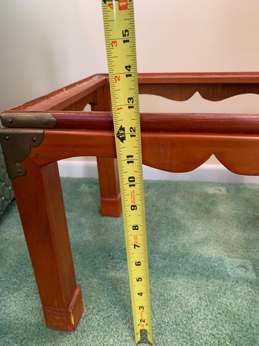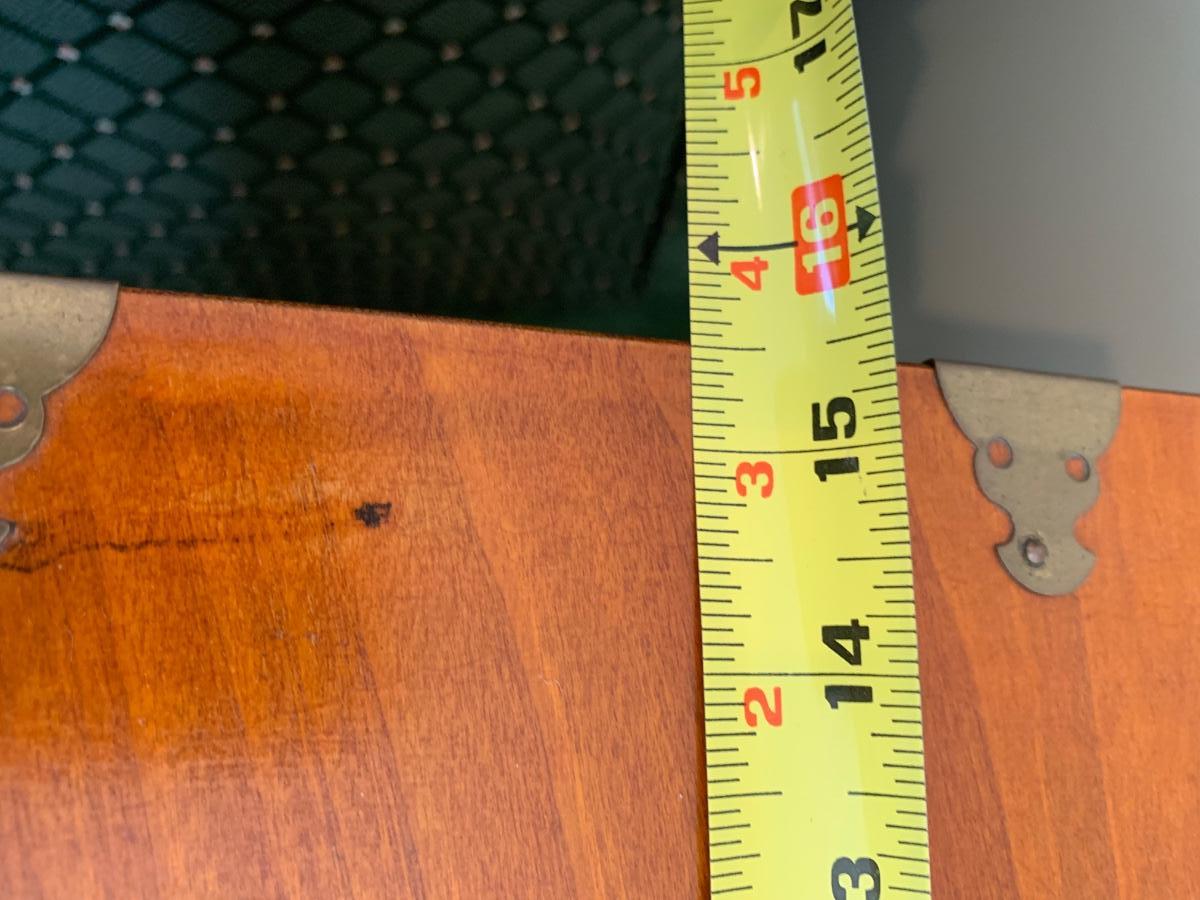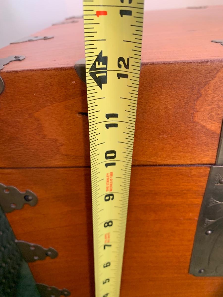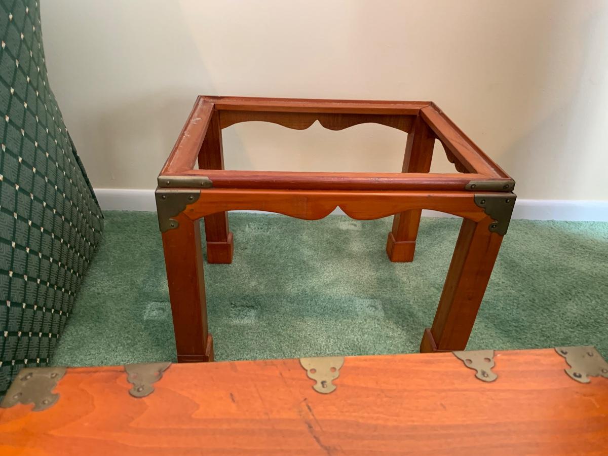 Brass and wood Asian box or Trunk on stand , lined with paper with writing on it