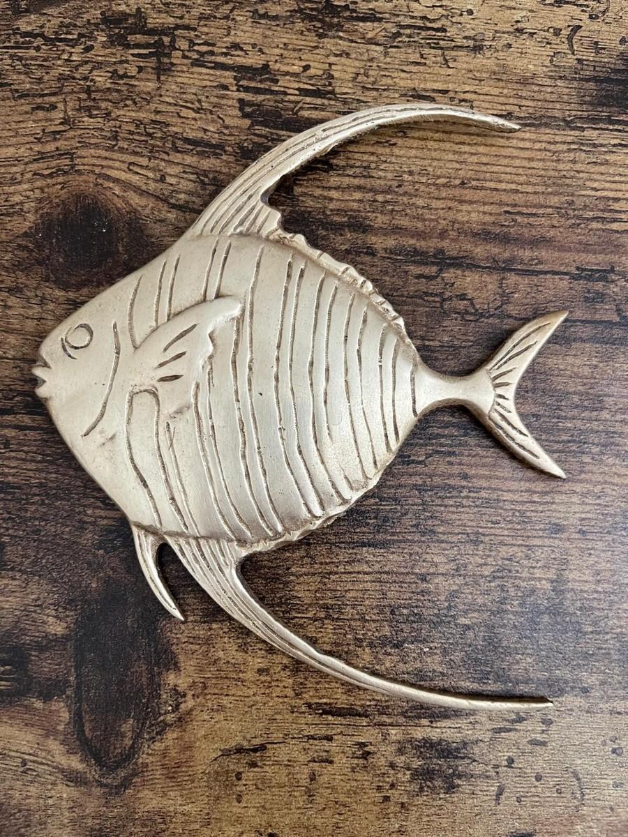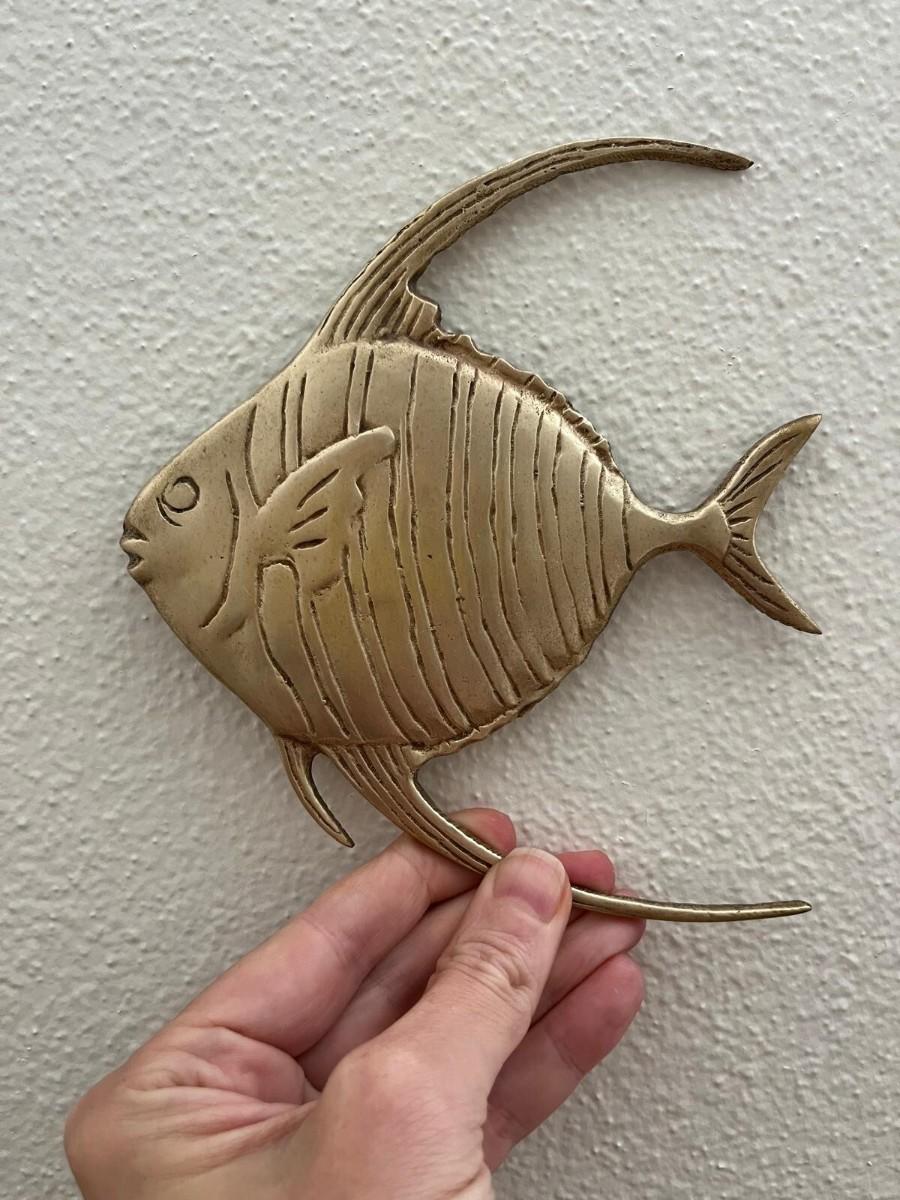 Solid Brass tropical Angel fish vintage wall décor hanging retro mcm