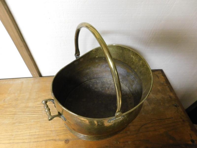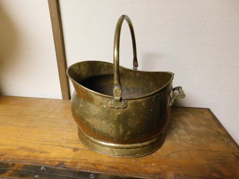 Brass Ash Bucket with Handle has some age wear and may need polishing.